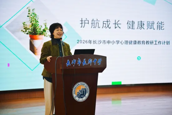长沙市心理健康教育教研员梁珊对2026年全市心理教研工作进行系统部署,结合教育形势与学生需求,详细解读重点任务、实施路径和发展方向。她强调,新的一年要深化教研内涵,创新教研方式,提升队伍专业素养,切实为学生健康成长保驾护航。