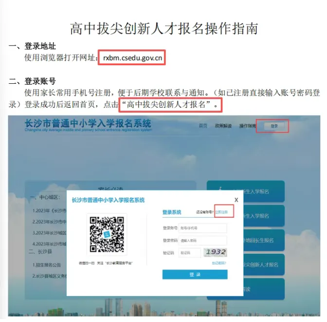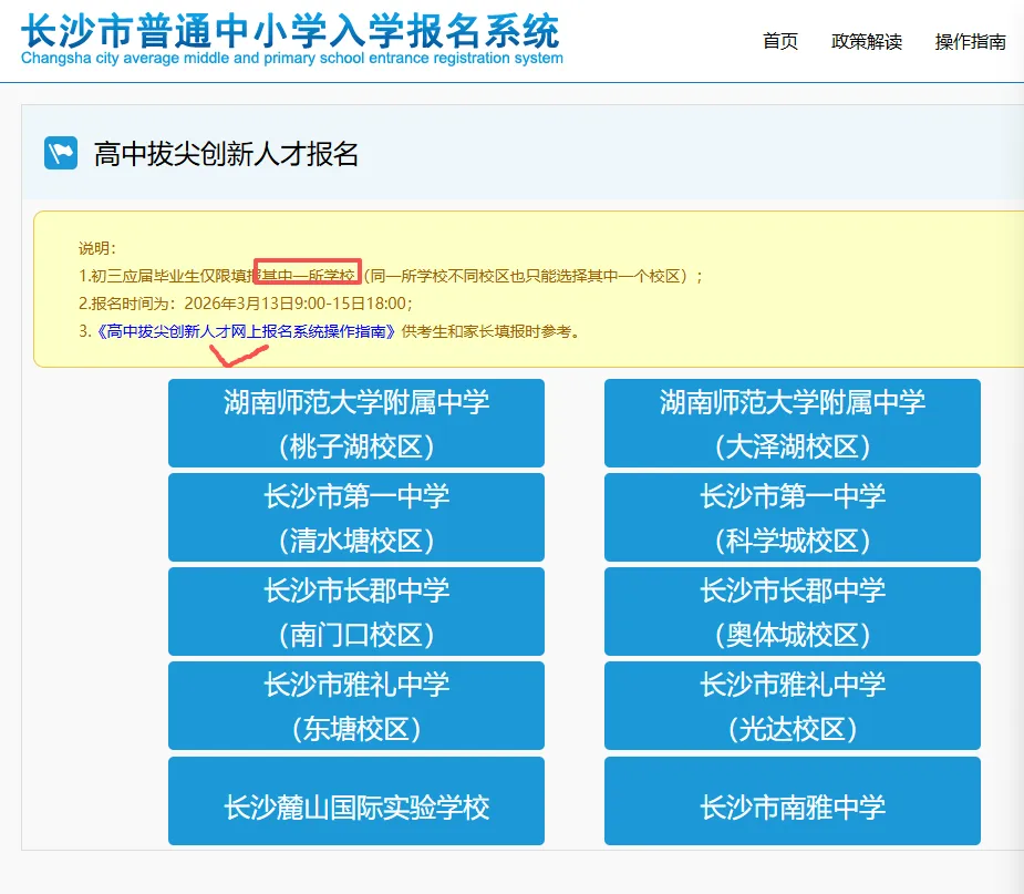 浏览器打开网址进入系统后,先用手机号登录,再返回首页,点击“高中拔尖创新人才报名”(正式开放报名后官网才显示),选择目标学校即可进入报名页面。