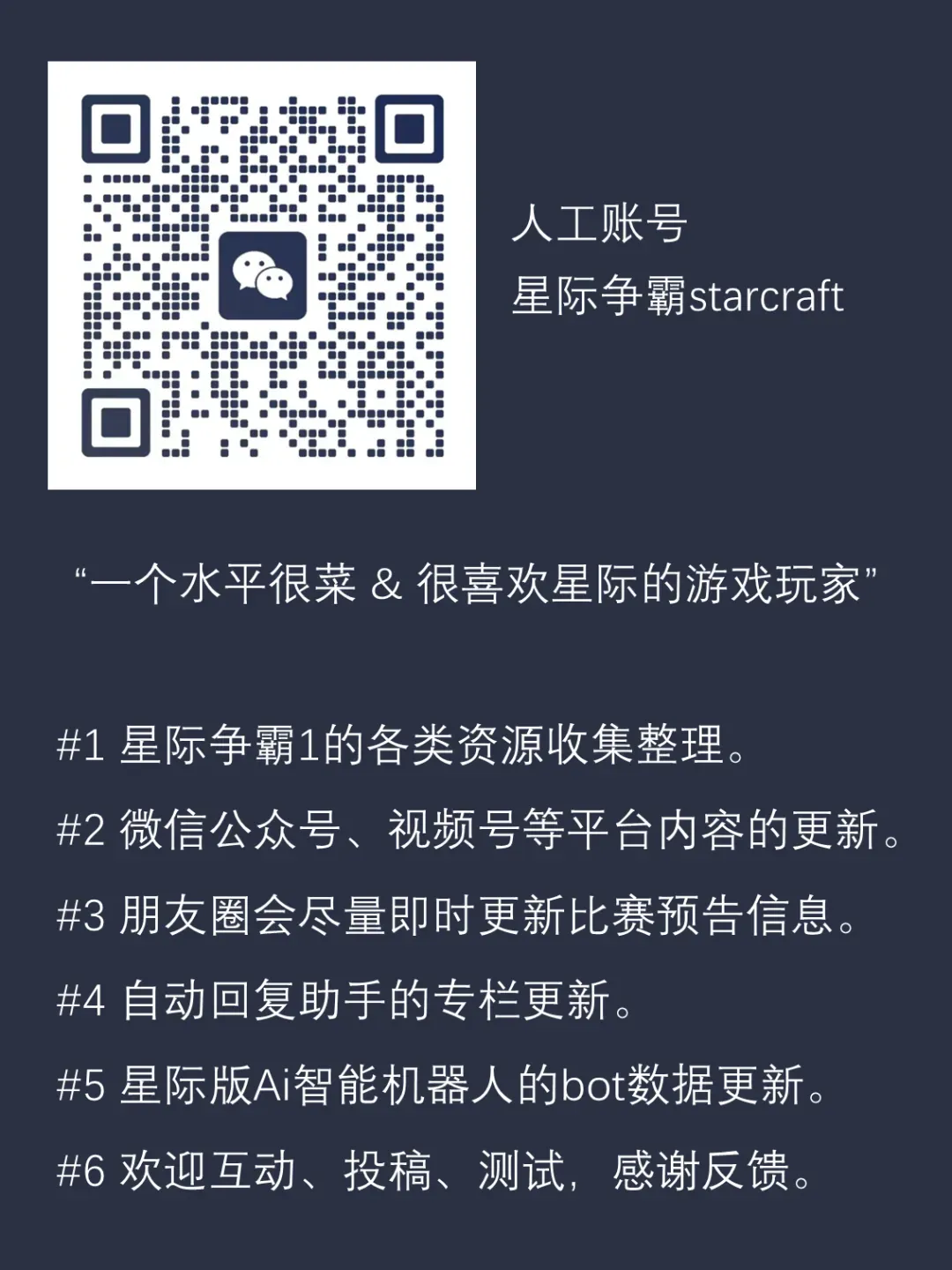 专属于星际争霸玩家的一站式阵地 微信小程序:星际老男人上线啦~核心功能直击痛点:实时更新赛事直播预告。赛事直播预告、赛事日历精准锁定每一场巅峰对决,最新赛事预告提前知晓,再也不会错过大神操作名场面。简化版的星际争霸赛事直播吧。【首页】滑动查看赛事预告卡片。点击预告卡片,即可进入赛事预告详情页。【频道】主播频道。方便用户查阅星际主播及对应的平台。水友们可以给自己喜欢的主播频道进行点赞支持。【我的】专题栏目。包括各项参数查询、对战平台、资源下载等。星际水友在使用小程序的过程中,如果有遇到问题反馈可以加我微信:从1998年的初次相遇,到如今的老友重逢,星际争霸早已超越游戏本身,成为连接青春与热爱的信仰符号。在2025年的尾巴上,终于鼓捣出了这个玩意儿,也算是完成了自己的一个小小心愿,让青春与热爱续航。希望你喜欢。热爱星际争霸、还在继续关注星际争霸的朋友:可以添加微信号(broodwar1998),有空可以约单挑、群殴、RPG,加入微信群聊一起讨论星际比赛。朋友圈会即时更新公众号的推文。但因时间有限,视频剪辑和专栏更新的速度不会太快,请各位水友谅解。另,会持续收集并整理星际争霸相关的新闻/资讯/预告/赛事等资源,并更新到公众号/小程序/朋友圈,所有资源下载完全免费,不收取任何费用。基于deepseek的星际争霸Ai助手持续更新中,有兴趣的小伙伴可以m我消息,为Ai智能体的训练提供更多的高质量数据和数据集,赋予这个星际争霸Ai智能体更多的技能技巧。订阅查看更多星际争霸相关资讯,微信公众号:星际争霸starcraft