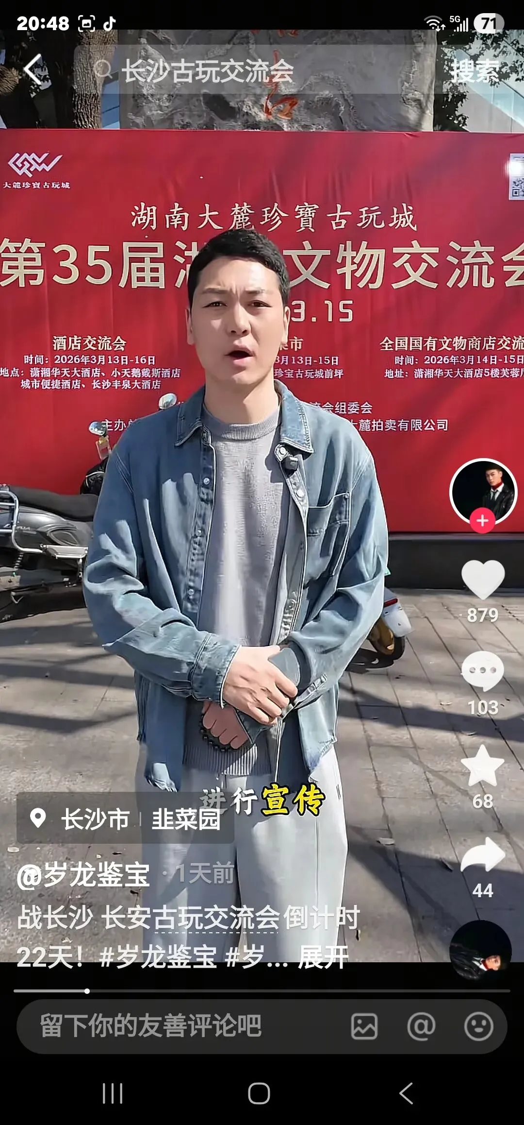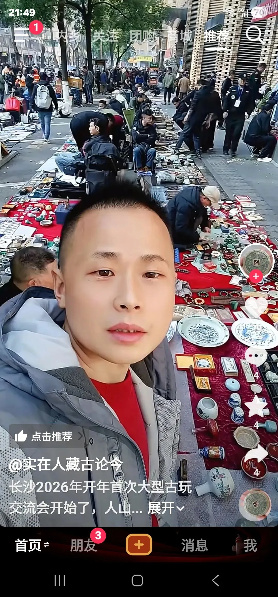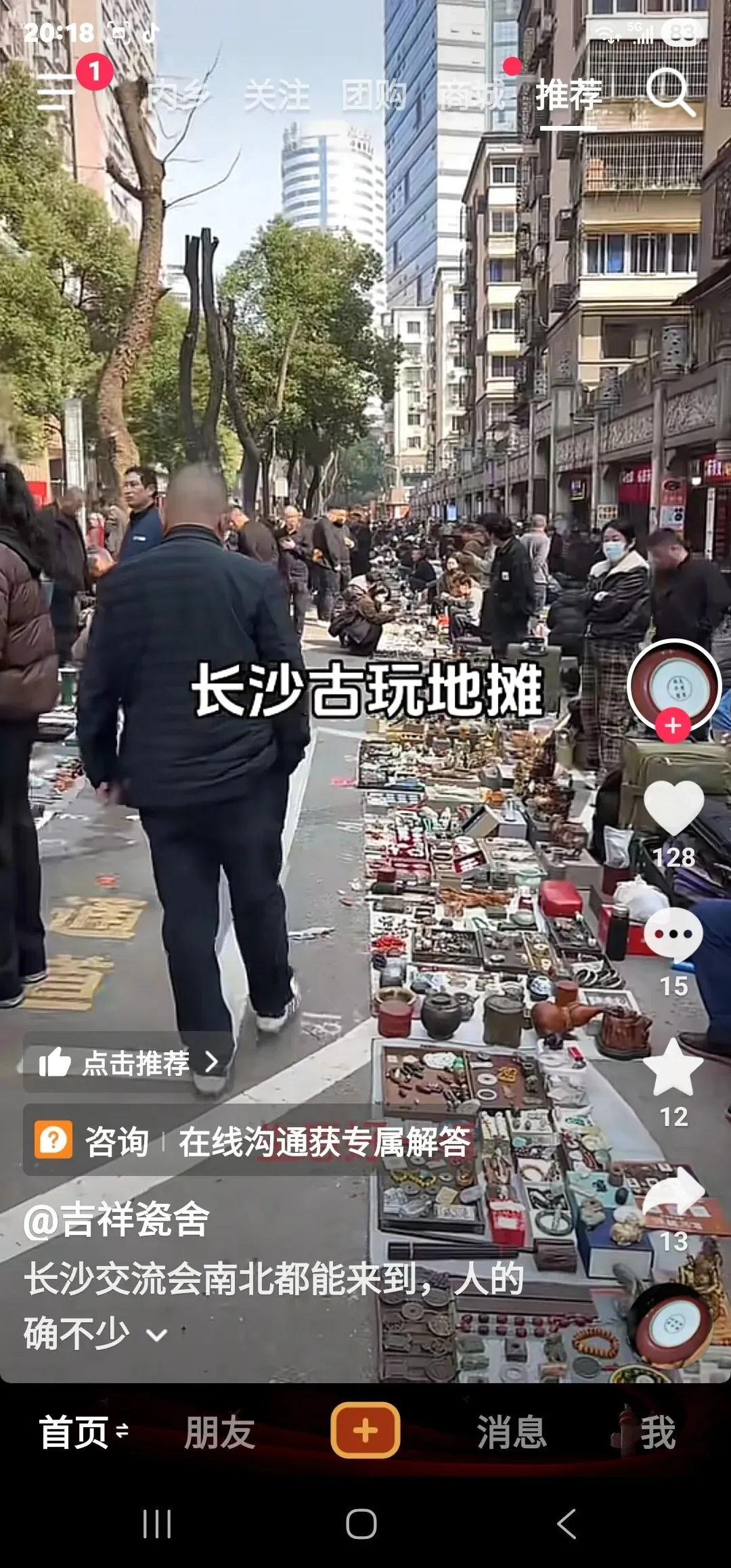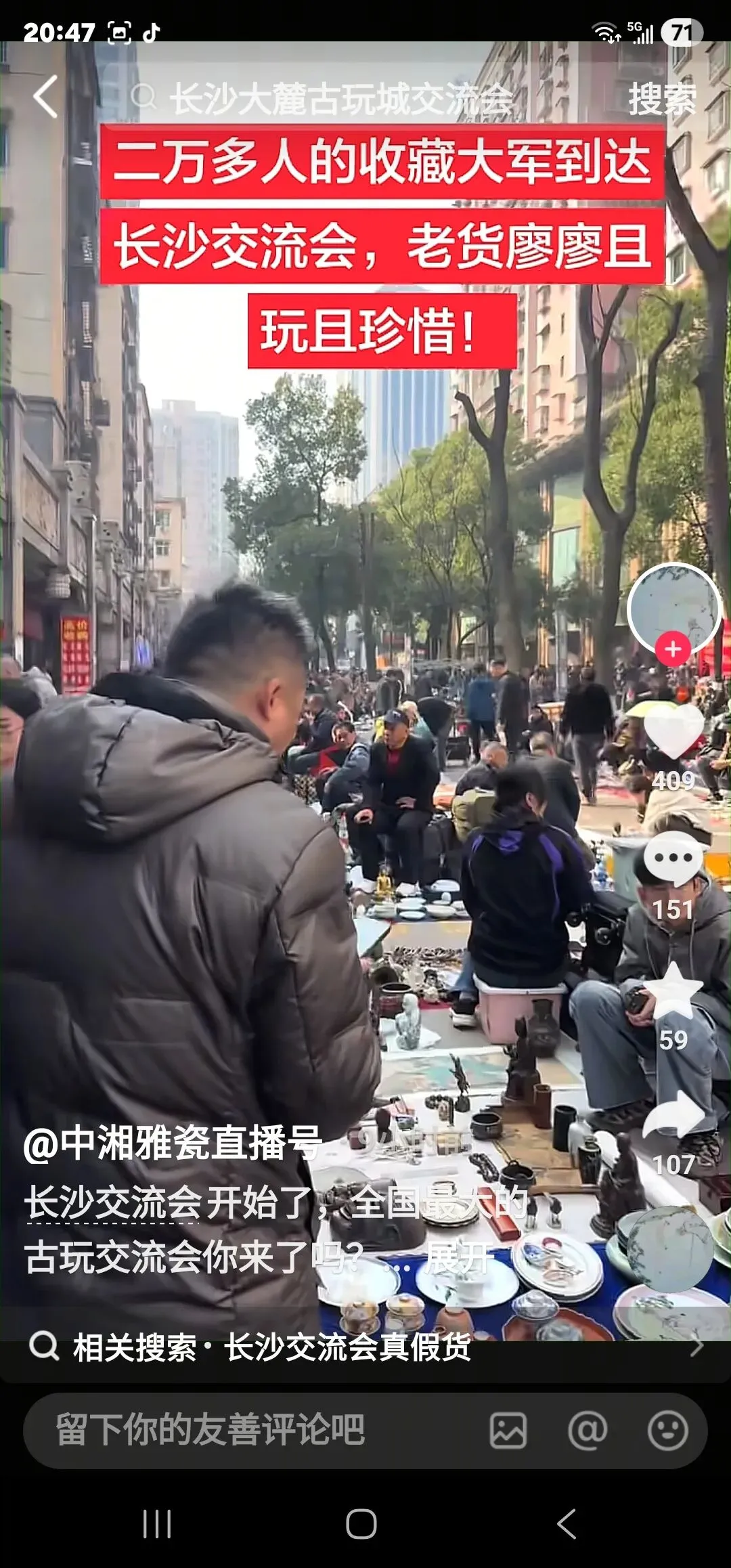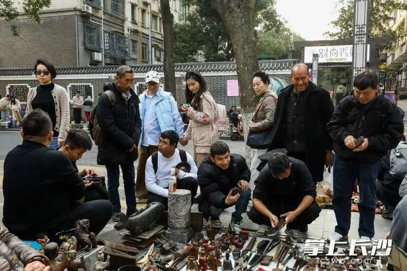 去摆摊的,去淘宝的,还有专门去打卡直播的。挤满了湖南大麓珍宝古玩城前坪的整条街。