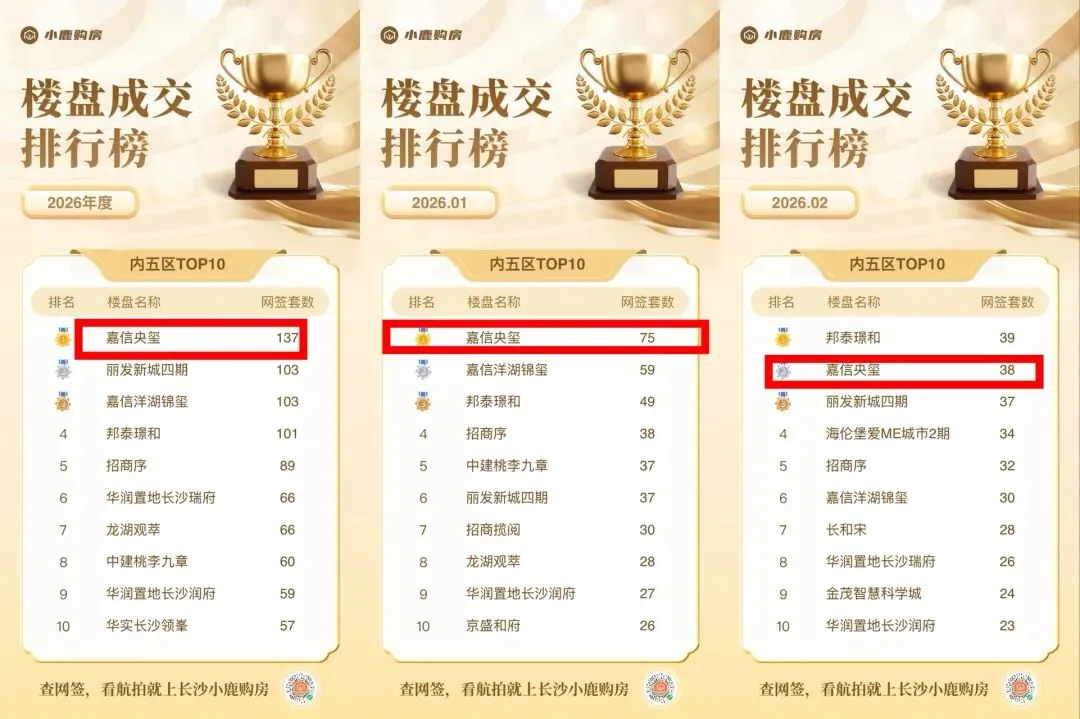 但是有一个项目凭借地段、产品力、全能配套在相对清冷的市场获得关注和流量,霸榜2026年新房成交排行榜单,直接给答案:嘉信央玺!