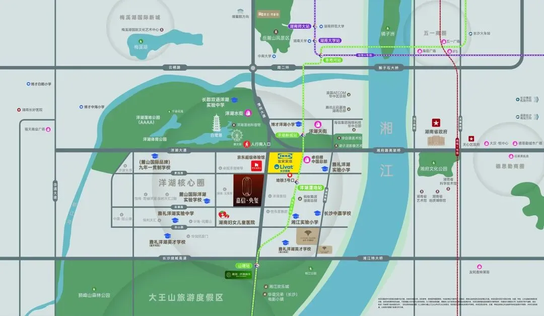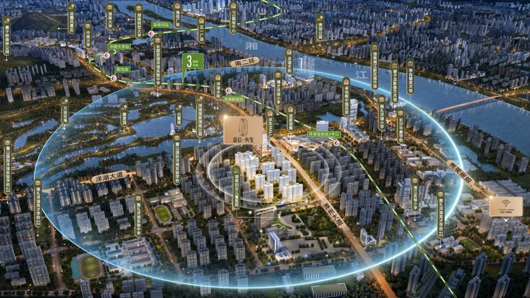 嘉信央玺落位洋湖生态宜居区核心,约500米生活圈内揽教育、商业、交通、生态、医疗全维配套,堪称长沙的 “六边形战士”。