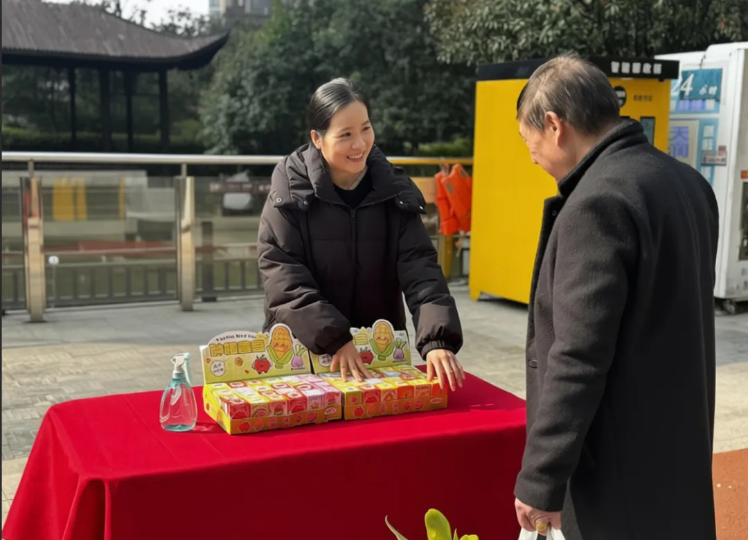 上午10点,客服中心的工作人员在小区支起了小摊,一盒盒包装精美的“种子盲盒”整齐地摆放在桌上,这些小小的盲盒里,藏着各种各样的花卉和蔬菜种子——可能是绚烂的太阳花,可能是清香的薄荷,也可能是可爱的五彩椒。