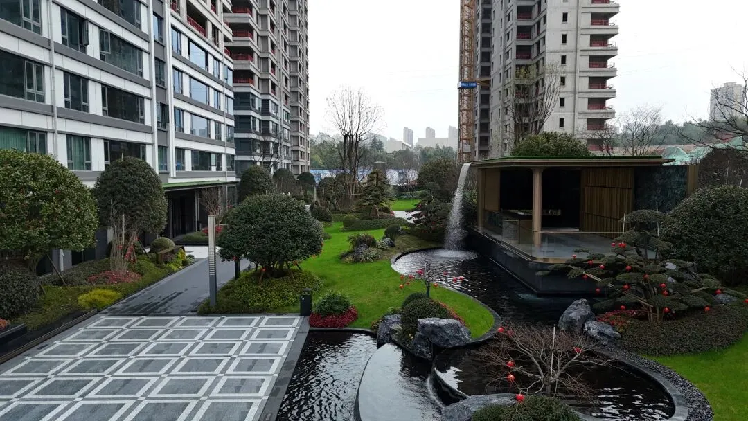 而润和瑞玺台的锦鲤池面积足足约630㎡,碧水澄澈、锦鳞嬉戏,风过林梢与流水潺潺相映,业主归家即是度假。