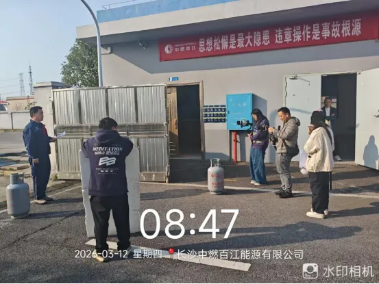 2026年3月12日,长沙市城管局宣传片摄制组再次将镜头对准长沙中燃百江。摄制组聚焦气站规范化运营与危货车智慧化管理两大核心场景,实地记录长沙燃气行业转型升级的鲜活实践。