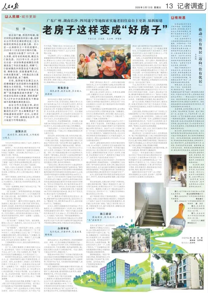 由业主作为实施主体,老旧住房自主更新、原拆原建如何凝聚居民共识?怎么筹集资金?怎样畅通审批流程?近日,记者在广东省广州市、湖南省长沙市、四川省遂宁市等地探访。
