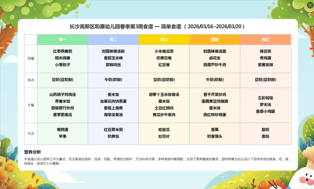 幼儿饮食关乎孩子的成长与健康,和康幼儿园科学定制每日食谱,确保菜品新鲜、种类齐全,为孩子搭配健康营养膳食,保障幼儿健康成长。