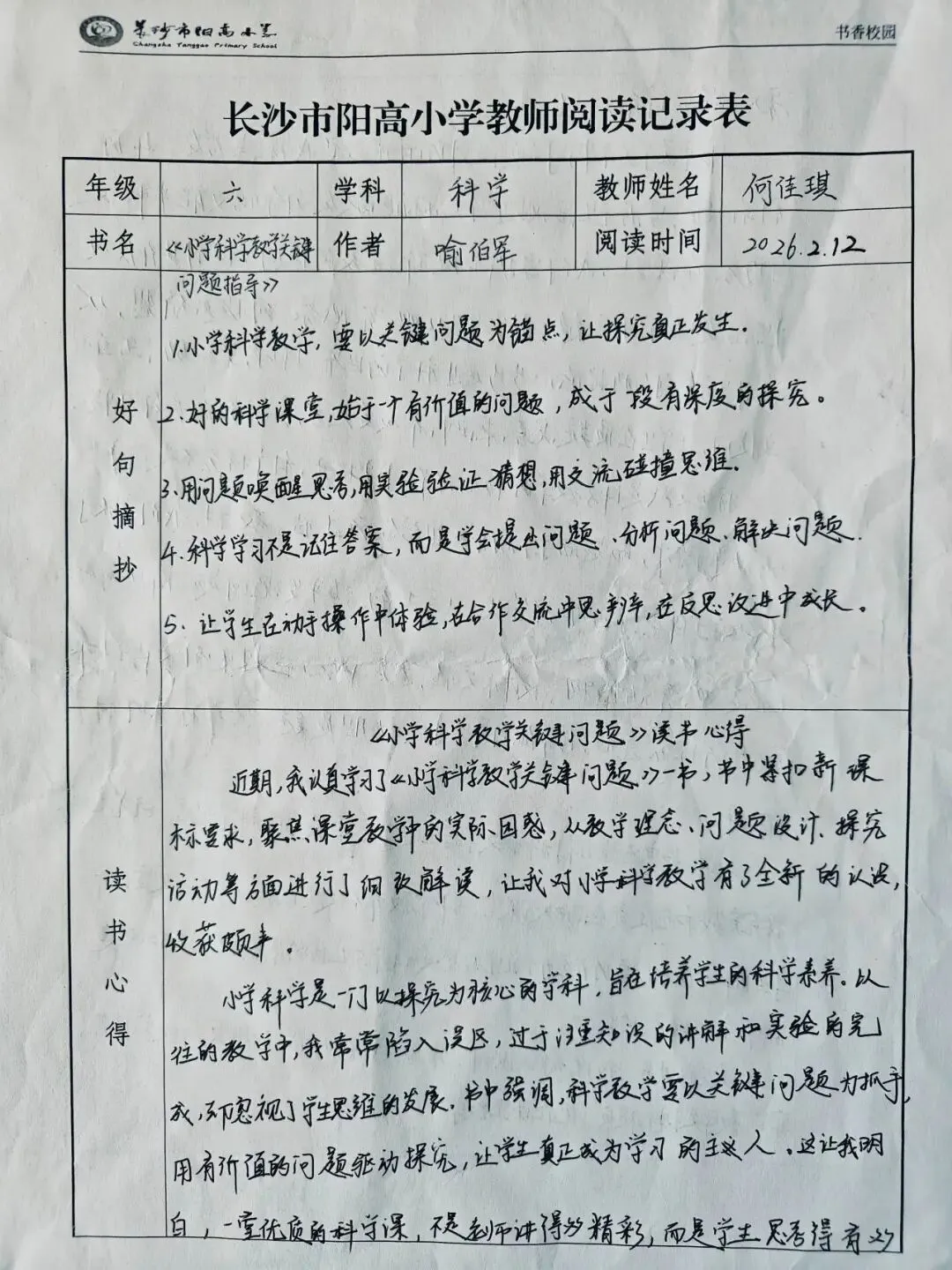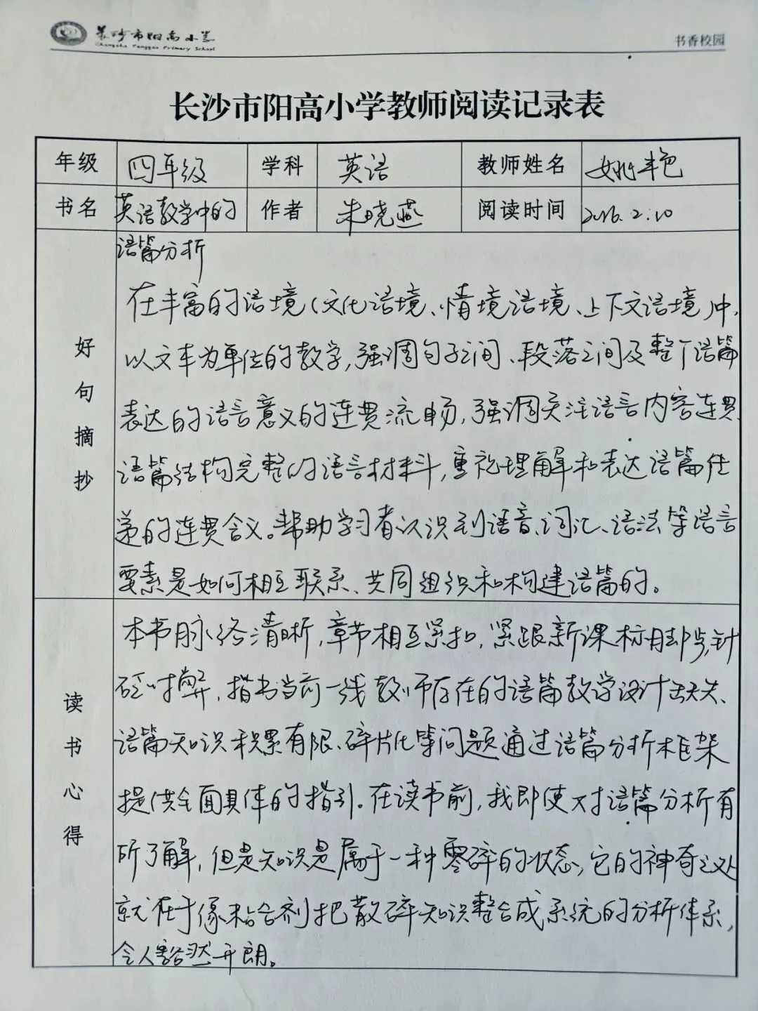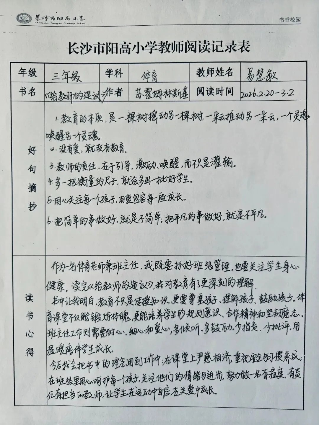笔尖耕耘,书香盈袖——长沙市阳高小学教师寒假阅读成果展