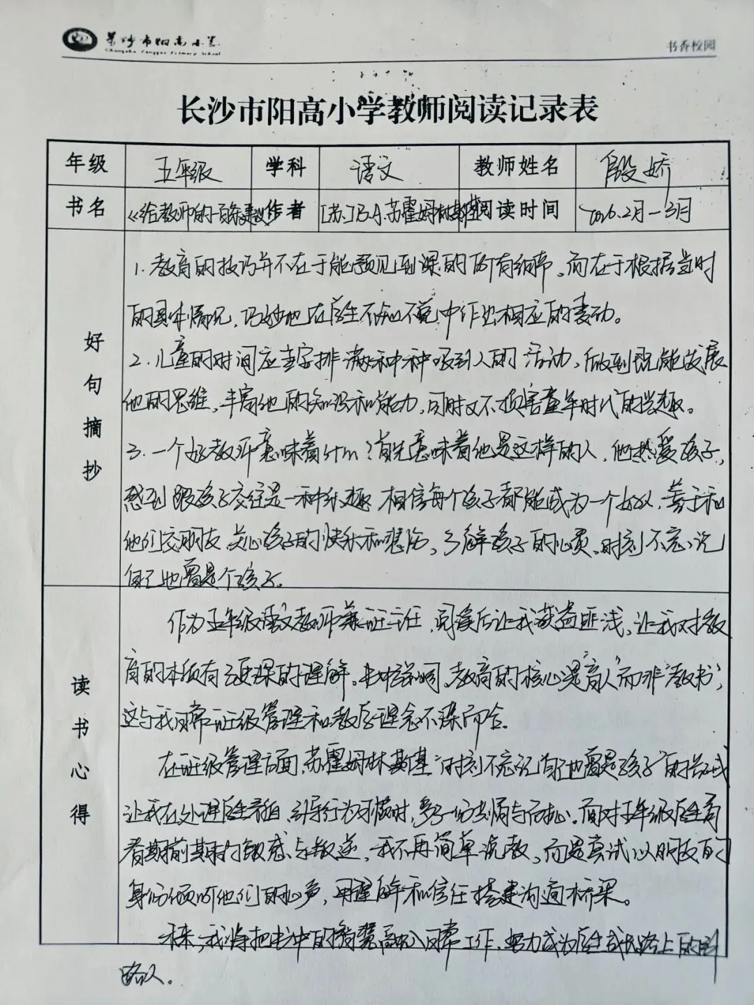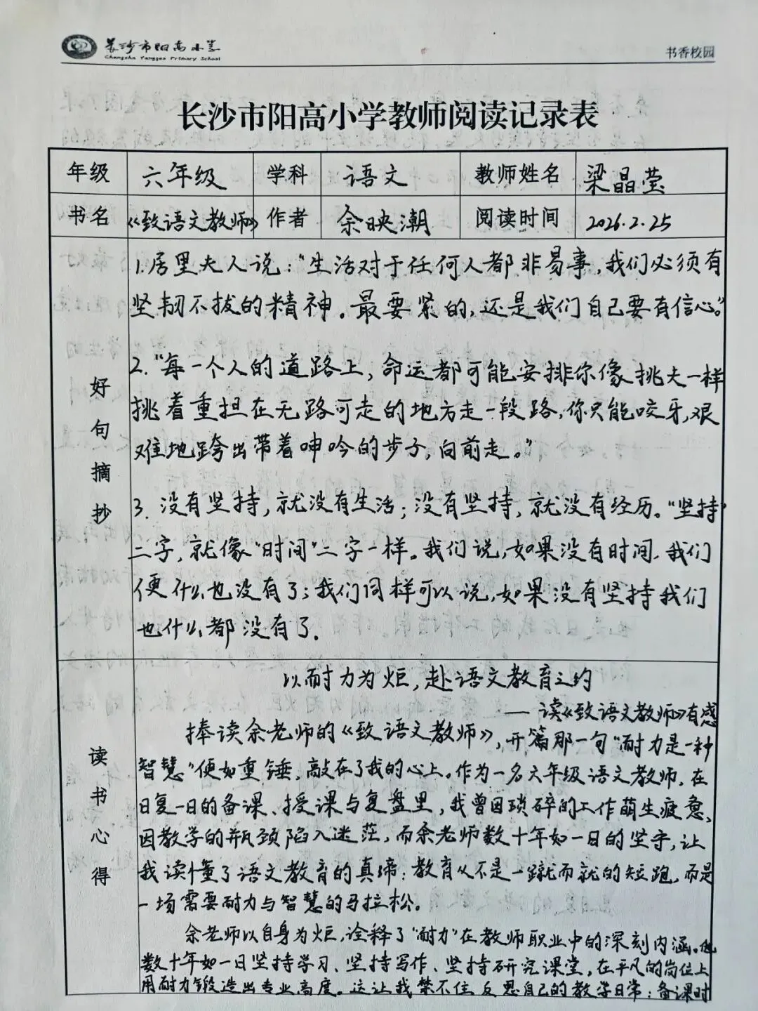 书香校园,师者先行。为深入落实《全民阅读促进条例》,长沙市阳高小学教科室在寒假期间组织全体教师开展“练字+阅读”双修作业,以教师率先垂范,深入推动书香校园建设。
