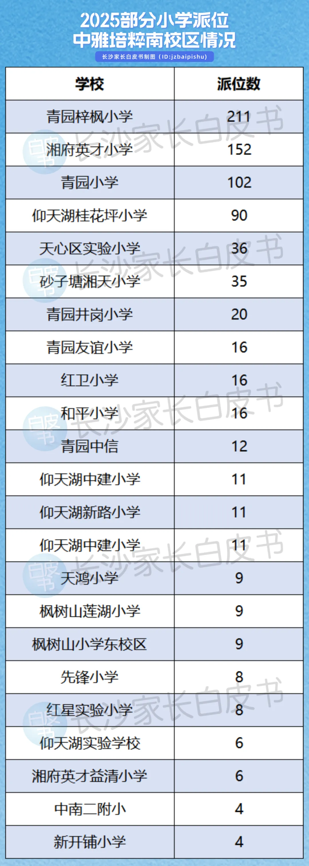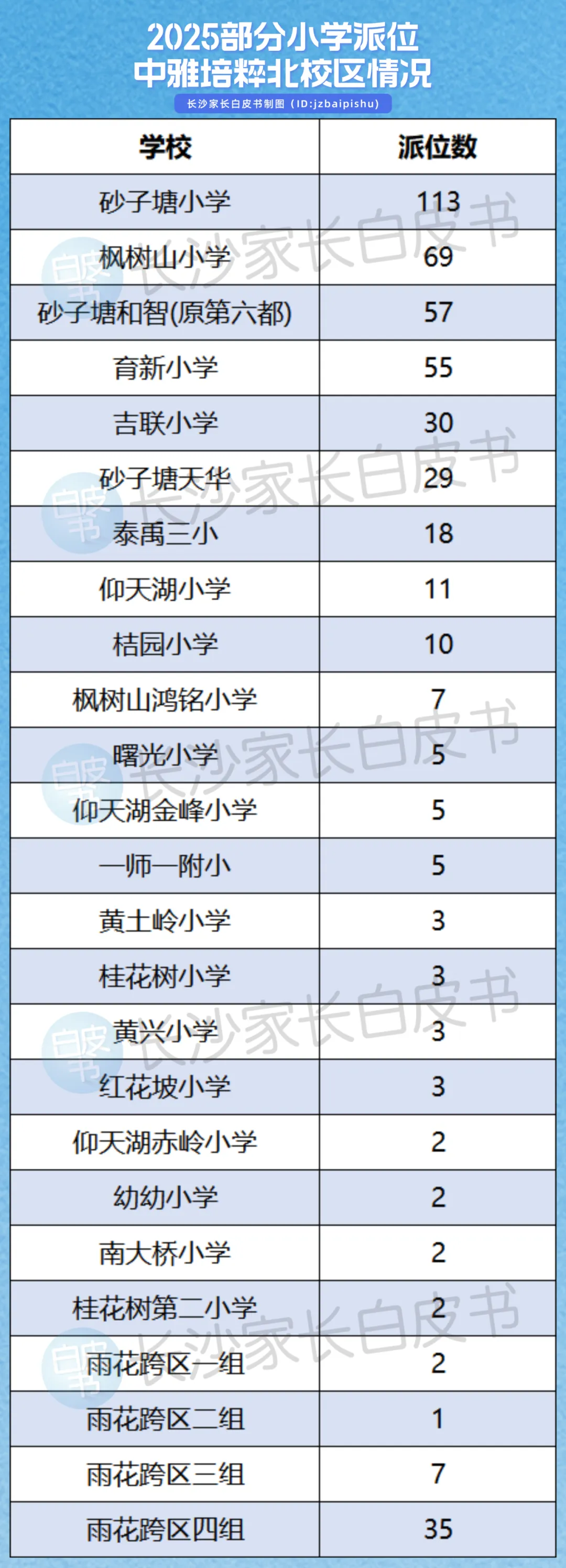中雅培粹北校区在雨花区派位最多的是:砂子塘小学、枫树山小学。据说,中雅正在和砂子塘小学、枫树山小学、育新小学共建拔尖创新人才贯通培养。