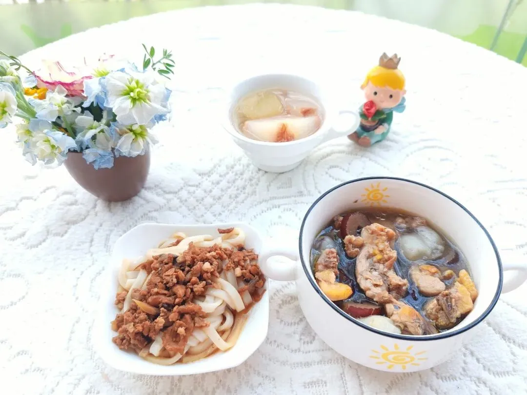 晚餐:炸酱粉 三圆鸡汤