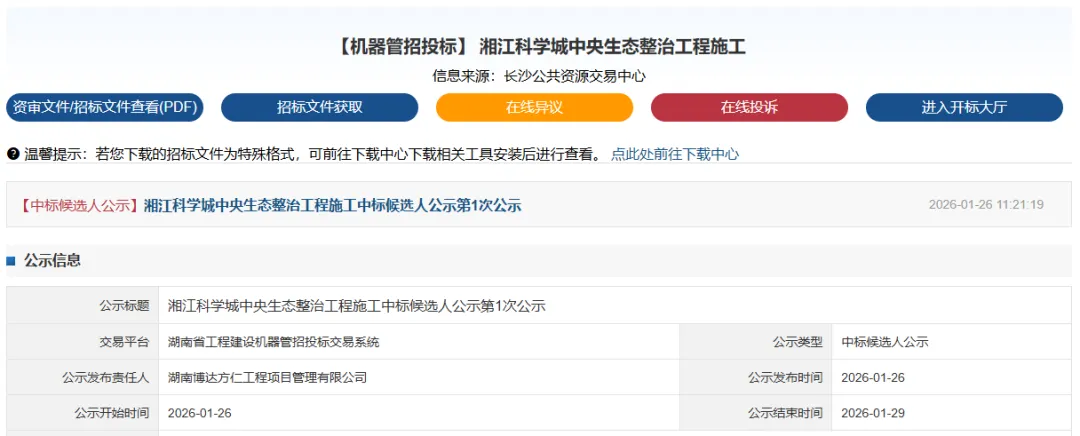 除了湘江科学城湿地公园,片区还有一座湘江科学城中央绿轴公园,已于今年1月施工中标公示,同样值得期待。