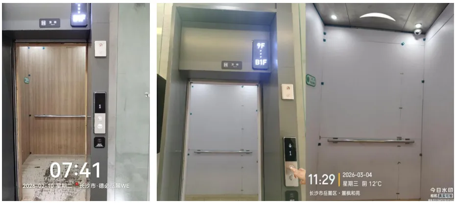 园区对轿厢木质隔板进行拆除,并于3月4日将厚重木质保护隔板更换为轻质PVC材质。
