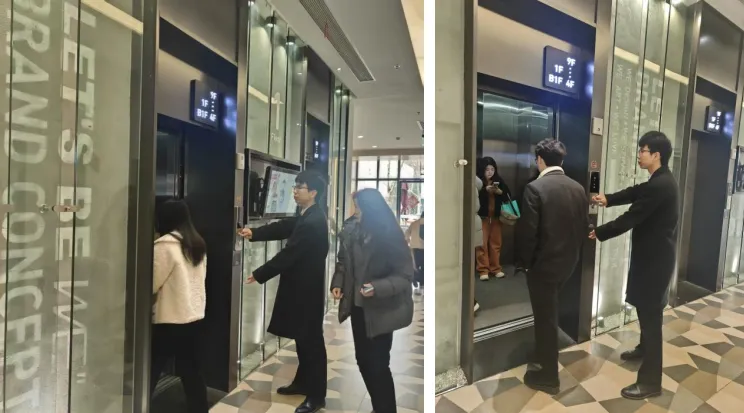 2.三个电梯里面其中有一个电梯是货梯,在空闲的时候也会承担了客梯的任务,但是做了几个人就会一直滴滴提示超载,怀疑是四周很厚的挡板导致的,为啥货梯周围那层很厚的挡板要常年存在?