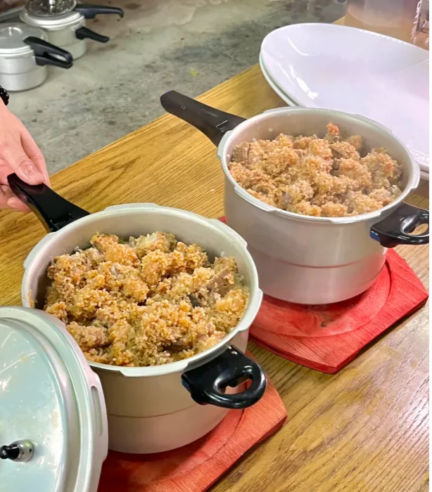 宁乡花猪肉可以点一份“粉蒸”试试。做法不复杂,五花切片,拌米粉、豆瓣和一点点酱油,撒上干辣椒和蒜末,铺上红薯或南瓜打底,上锅慢蒸。肉出油但不腻,米粉把香气兜住,筷子一夹就散,热气一冒,胃就安稳了。