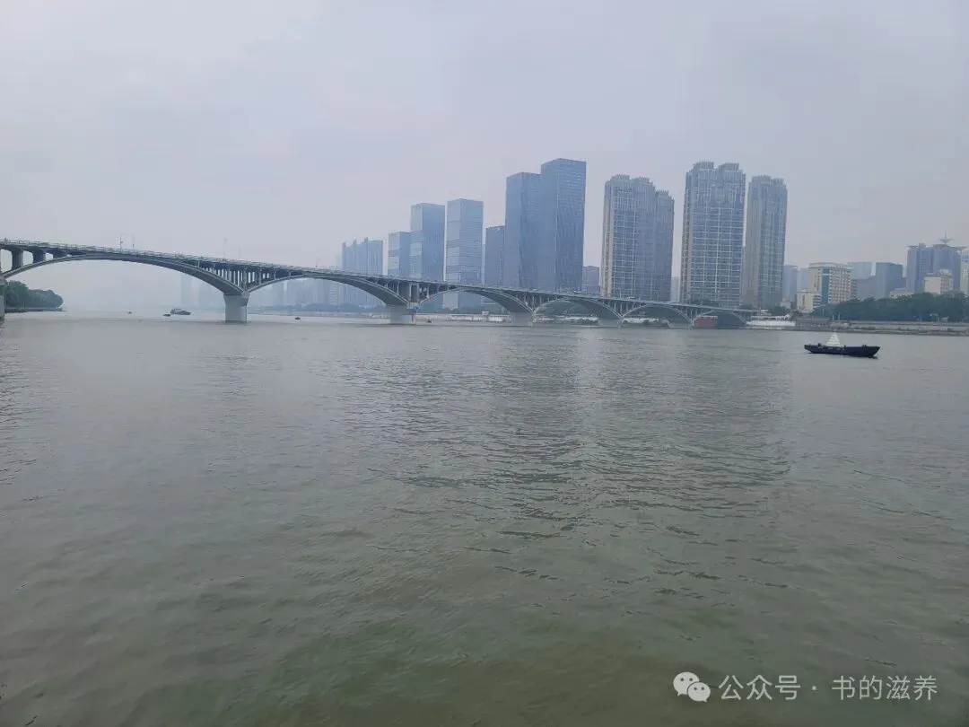 我们在雨中远眺湘江中央的橘子洲。烟雨迷蒙的景色很美,但拍不出来。
