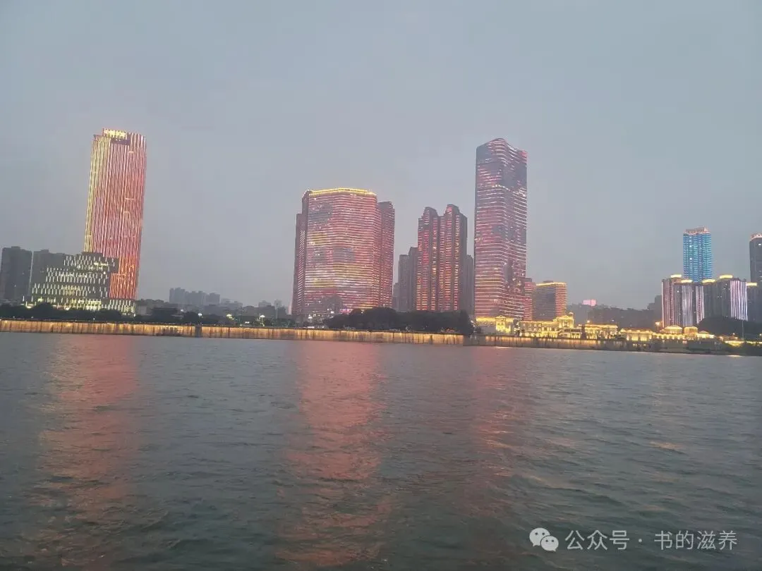 天暗下来,橘子洲又是另一种韵味,湘江边的灯光很美。