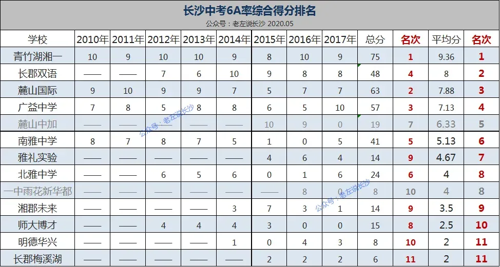 直到2019年中考,学校6A率仍保持在长沙十多名的位置,超过长郡梅溪湖,公办普高率,稳定在准一类学校的地位。