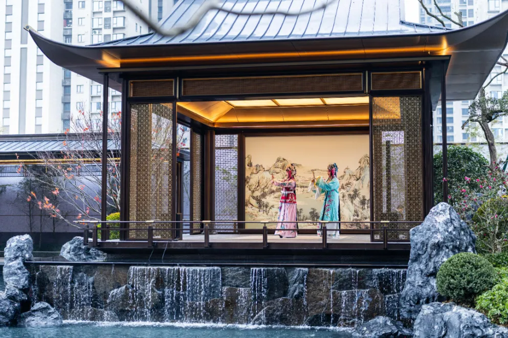 进口蓝翡翠奢石屏风、手绘《清明上河图》景墙、价值不菲的罗汉松对景……归家第一步,已是美学仪式与文化底蕴的双重体验。