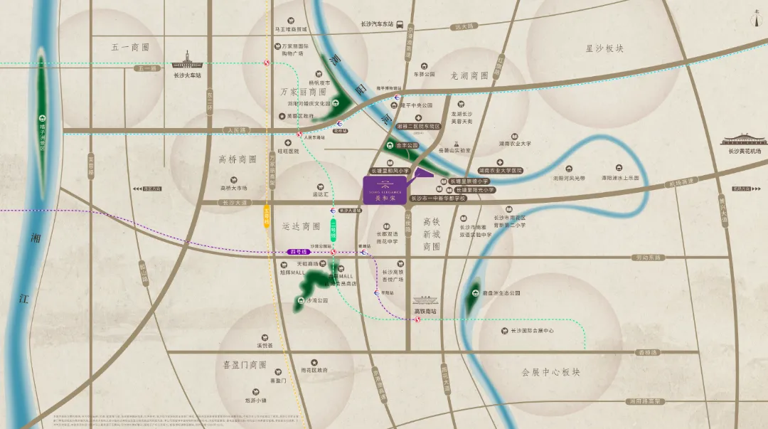 長和宋位于高铁新城核心区,作为自贸区长沙片区核心增长极、长沙城市副中心,坐拥中西部首个空铁联运国家门户枢纽,高铁新城区位优势得天独厚。