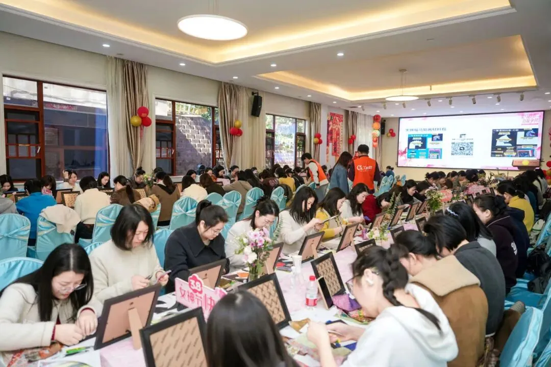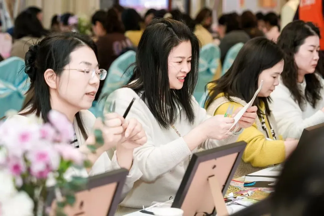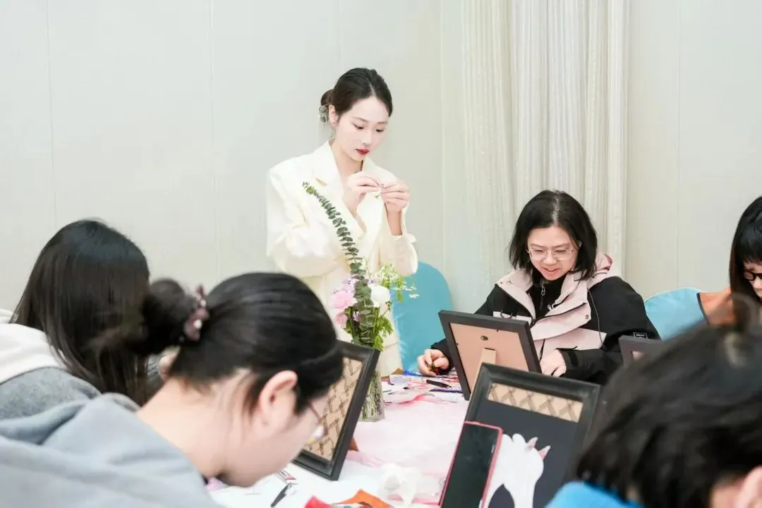 匠心手作润时光,传统文化沁人心。在手工体验环节,宋锦福马拼画与油画插花两项活动同步开展。女职工们静心创作、巧手勾勒,在宋锦经纬交织间拼贴福马纹样,将吉祥寓意与传统工艺融于作品;在油画插花中搭配色彩、构思造型,以鲜花与笔触绘就春日美好。指尖流转的是匠心,笔下绽放的是才情,大家在沉浸式创作中舒缓压力、陶冶情操,感受非遗美学与艺术创作的独特魅力。