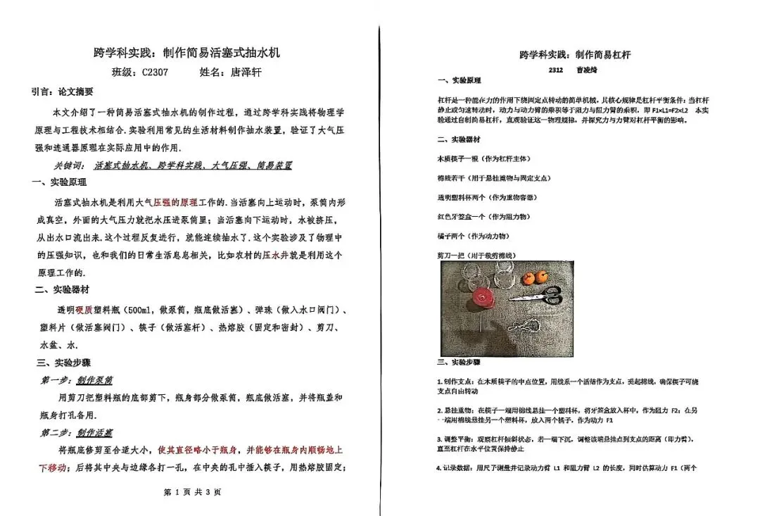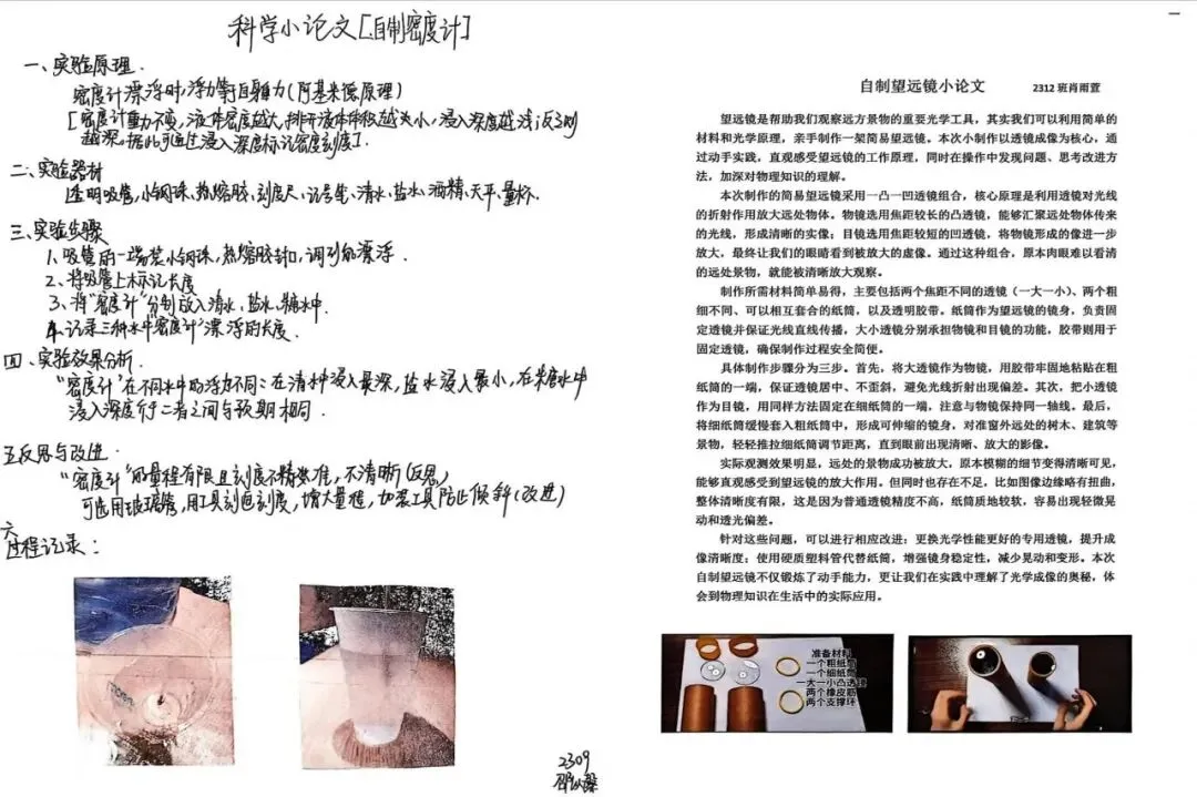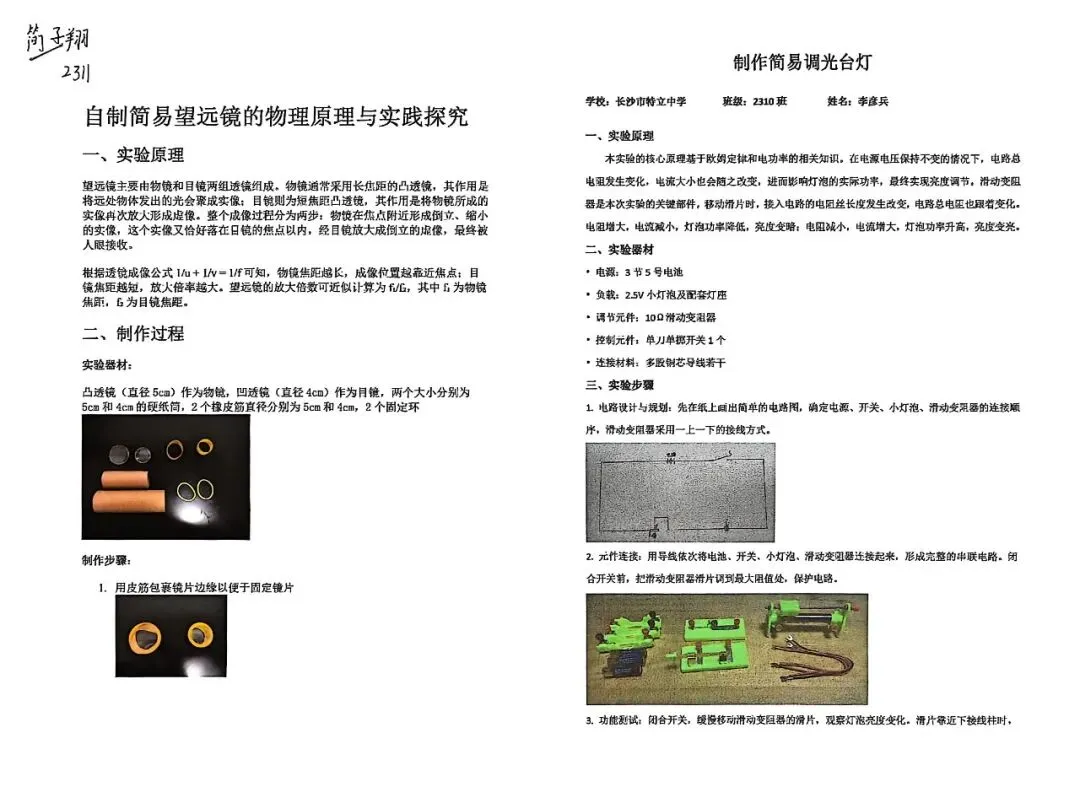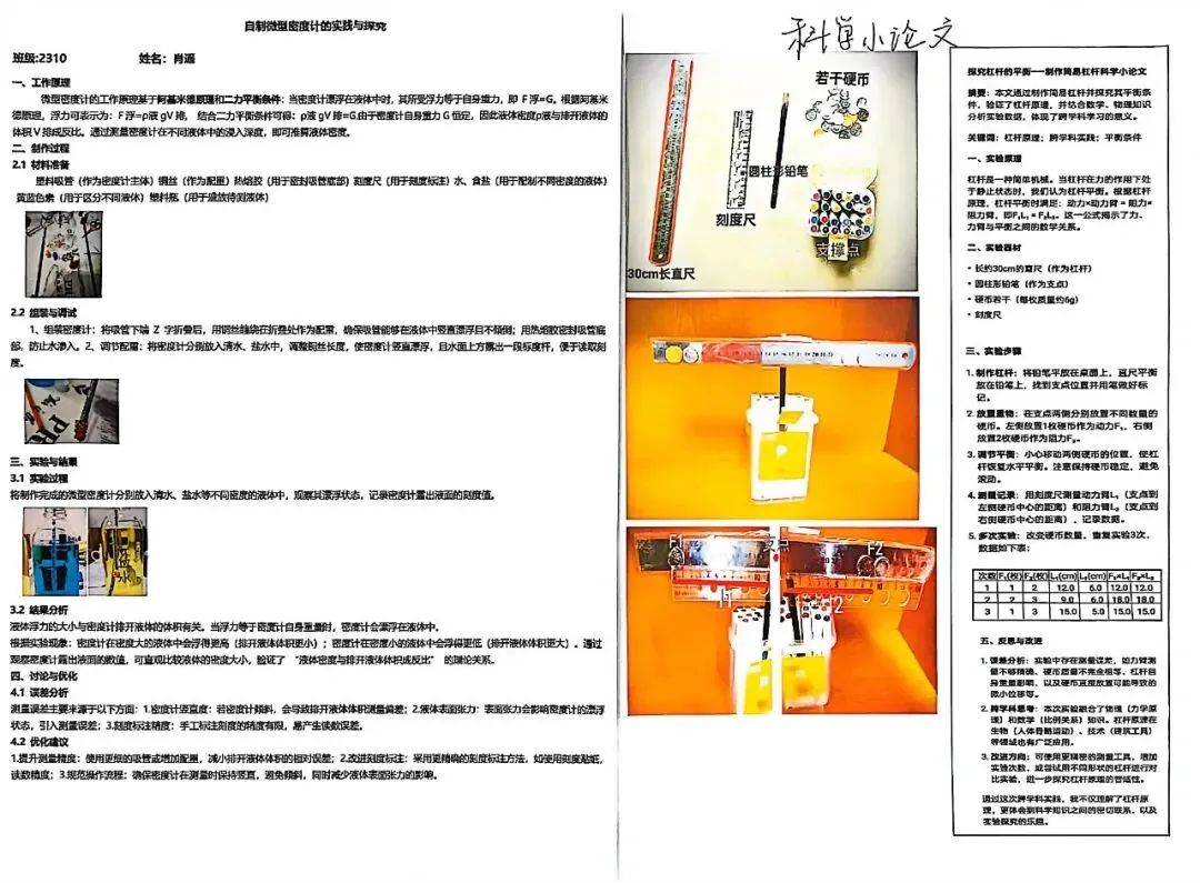 活动中,涌现出了一大批兼具科学性与创造力的优秀作品。在动手与动脑的深度交融中,同学们不仅加深了对物理概念的理解,更在失败与调整中学会了反思。他们在论文的最后,总能结合实践提出独到的改进方案。