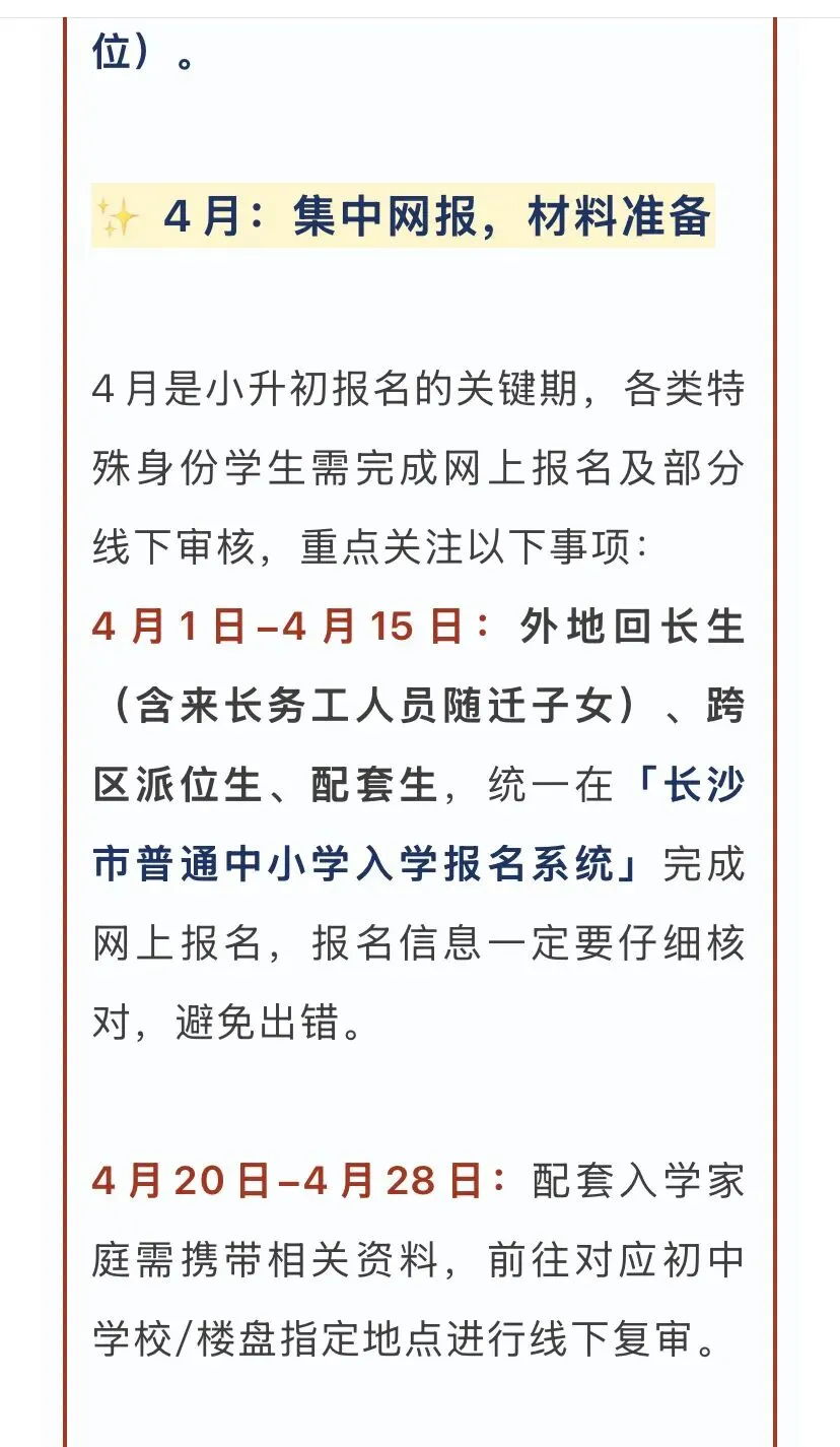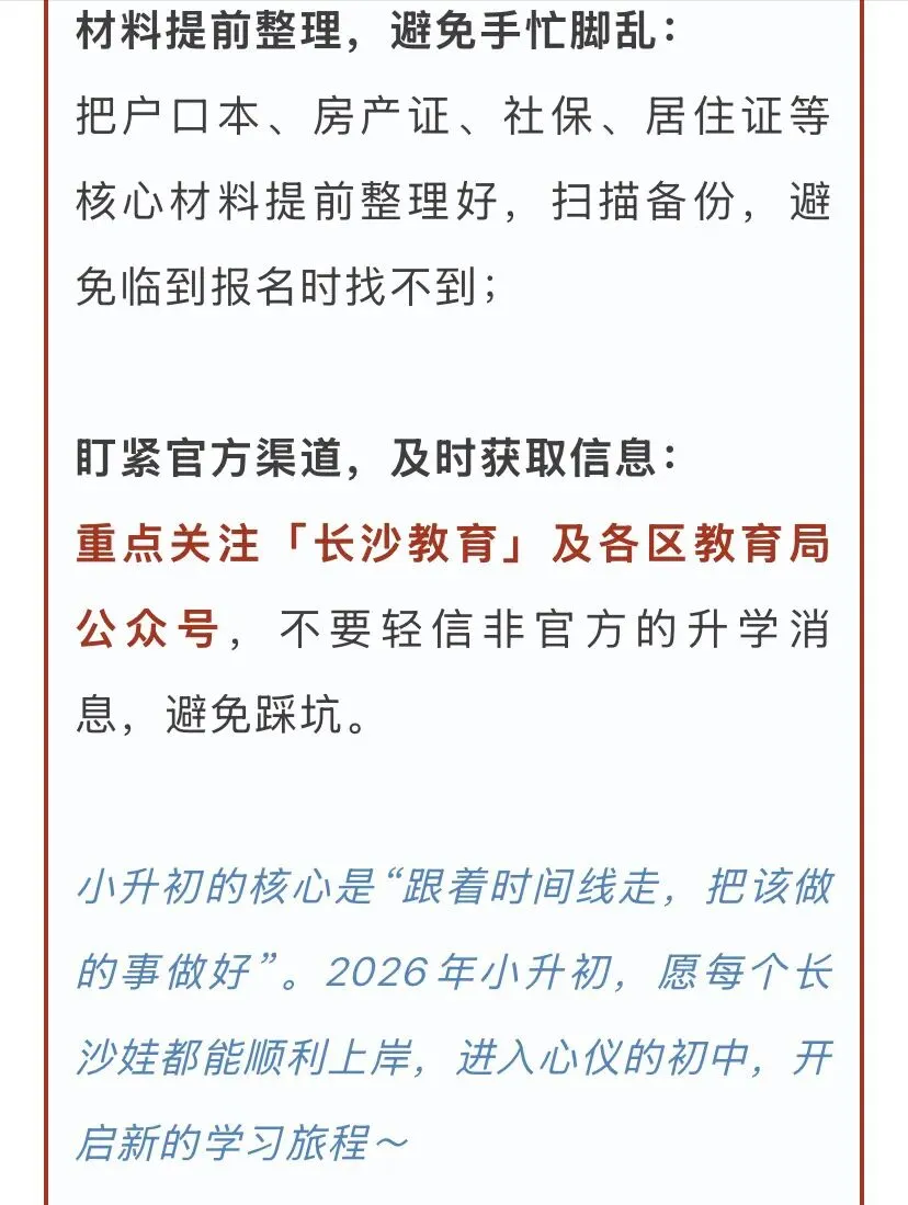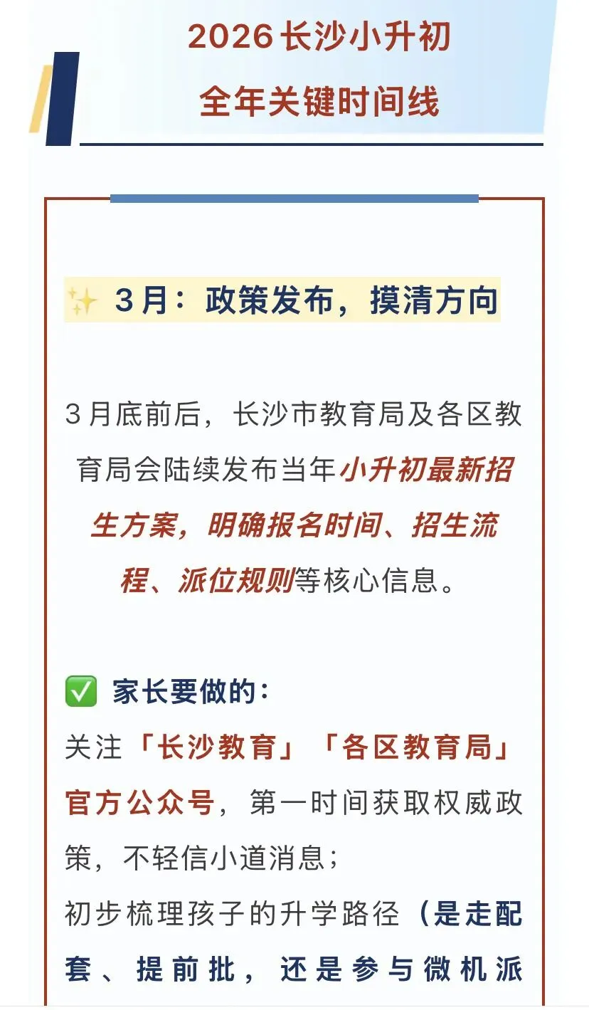 别慌!今天结合2025年官方招生流程,整理了2026长沙小升初全年时间线+核心攻略,