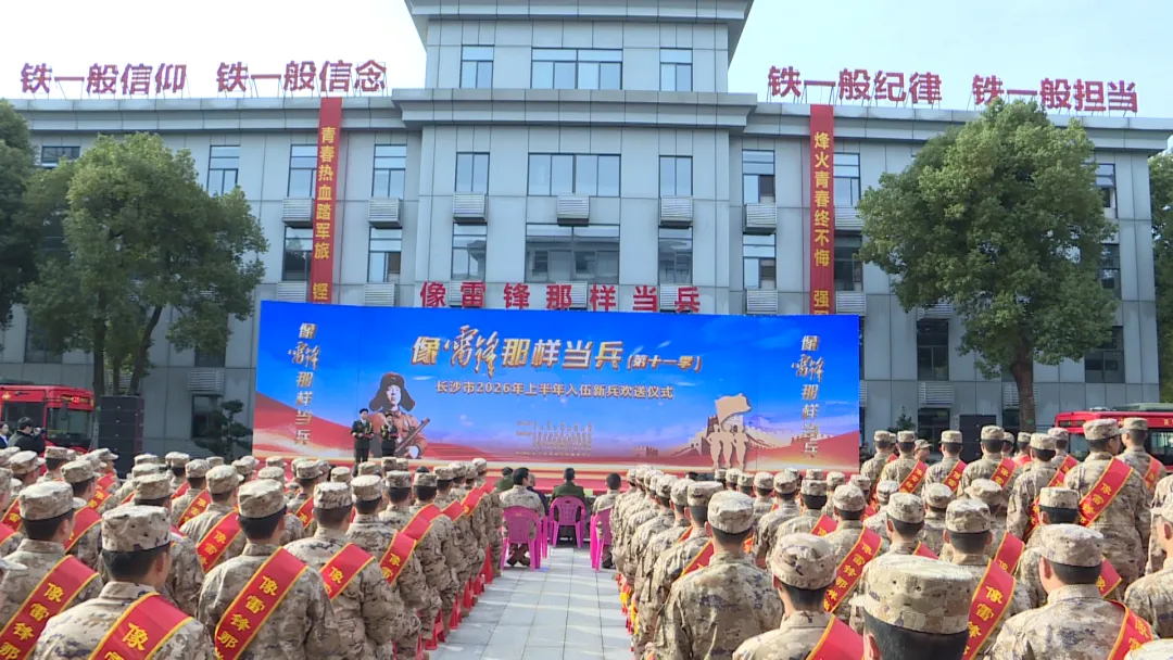 3月13日上午,望城区人武部雷锋广场上军歌嘹亮、誓言铮铮。长沙市2026年上半年入伍新兵欢送仪式在此隆重举行,又一批身着戎装的雷锋家乡优秀儿女整装待发,他们将带着“像雷锋那样当兵”的殷殷嘱托,告别家乡,奔赴祖国最需要的地方。