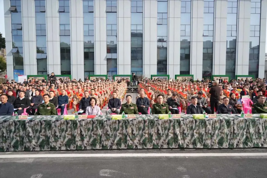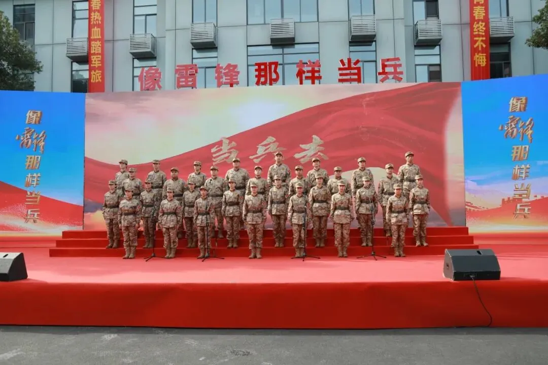 仪式尾声,全体新兵与望城区民兵合唱团齐声合唱雷锋家乡子弟兵从军歌《当兵去》。铿锵激昂的旋律,赤诚热烈的歌词,诉说着雷锋家乡子弟兵的家国情怀。
