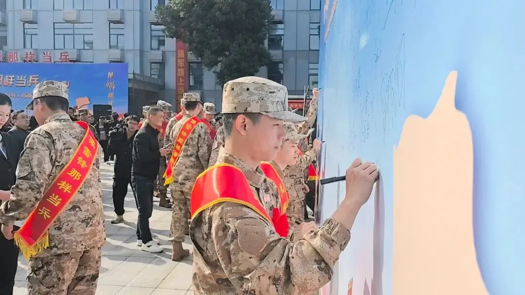 歌声落下,一场特别的签名仪式在广场一侧展开。签名墙上,新兵们郑重写下自己的名字。
