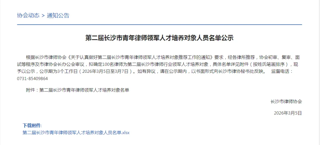 长沙市律师行业领军人才培养对象的评选,是各律所推荐,协会初审、复审、面试等程序及市律协会长办公会审议确定的。是长沙市律师协会为培育律师行业中坚力量、推动行业高质量发展开展的重要人才培养工作,通过系统化培养与专业化赋能,打造一批能助力法治建设的青年律师领军者,为长沙律师行业发展注入动力,为法治长沙建设提供坚实的法律服务支撑。