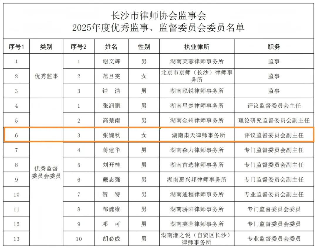 此次双项殊荣,是行业对张婉秋律师深耕行业监督、践行法治初心的高度认可,更是对肃天律所坚持党建引领、专业立身、规范治所发展理念的充分肯定。