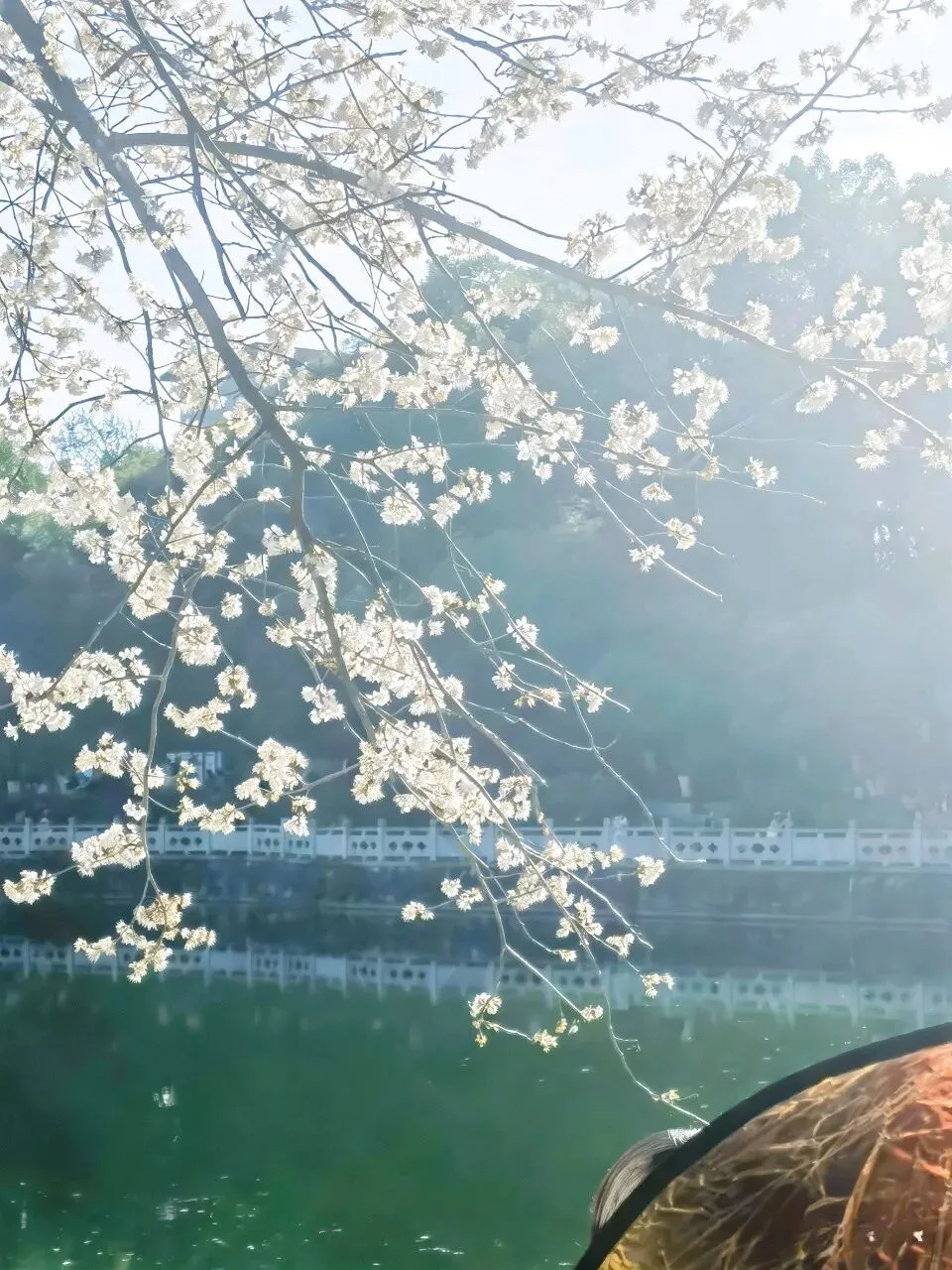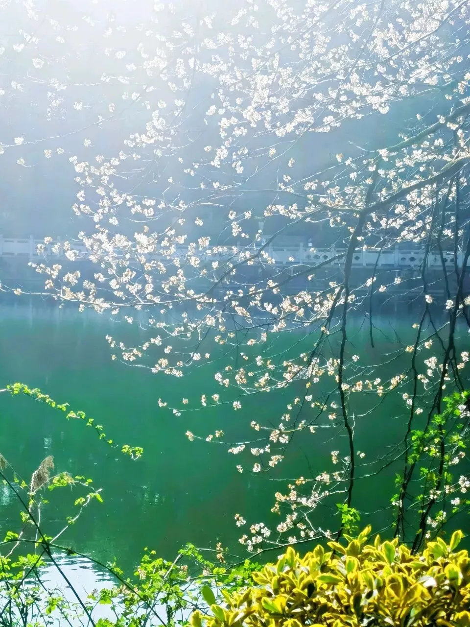 樱枝垂水,碎成满湖星光。