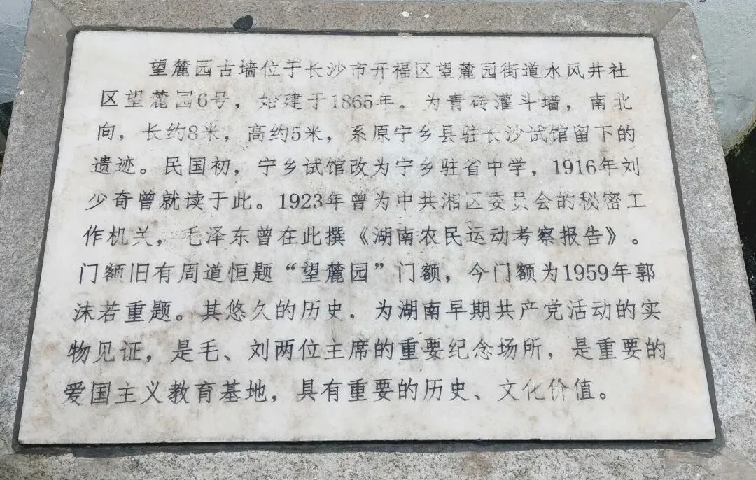 现存刻有郭沫若 1959 年题写“望麓园”门额的石墙,被列为长沙市一般不可移动文物。