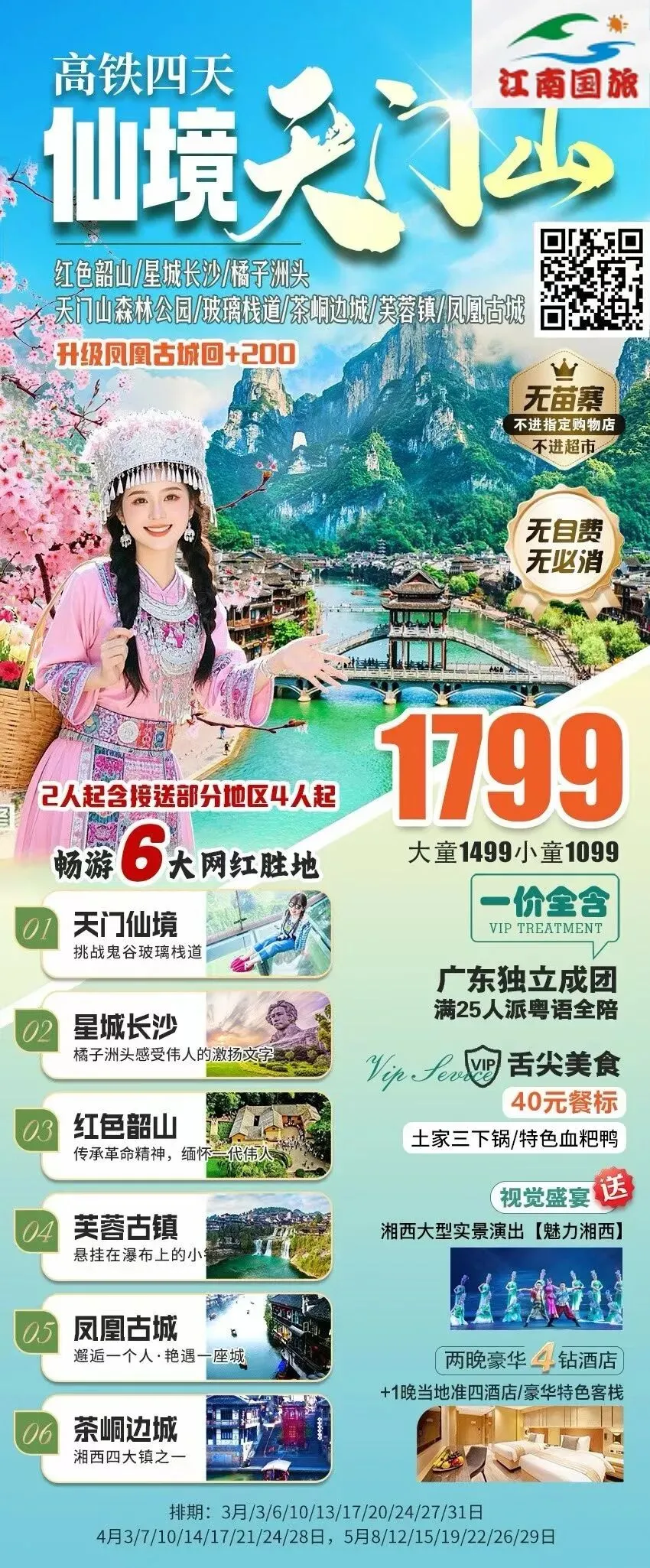 ¥1799畅游湖南星城长沙|橘子洲头|仙境天门山|芙蓉古镇|浪漫凤凰古城|韶山 高铁4天 含接送