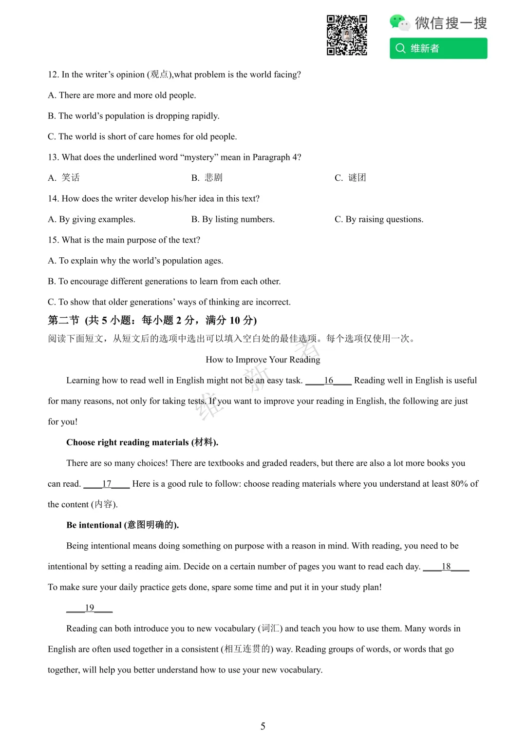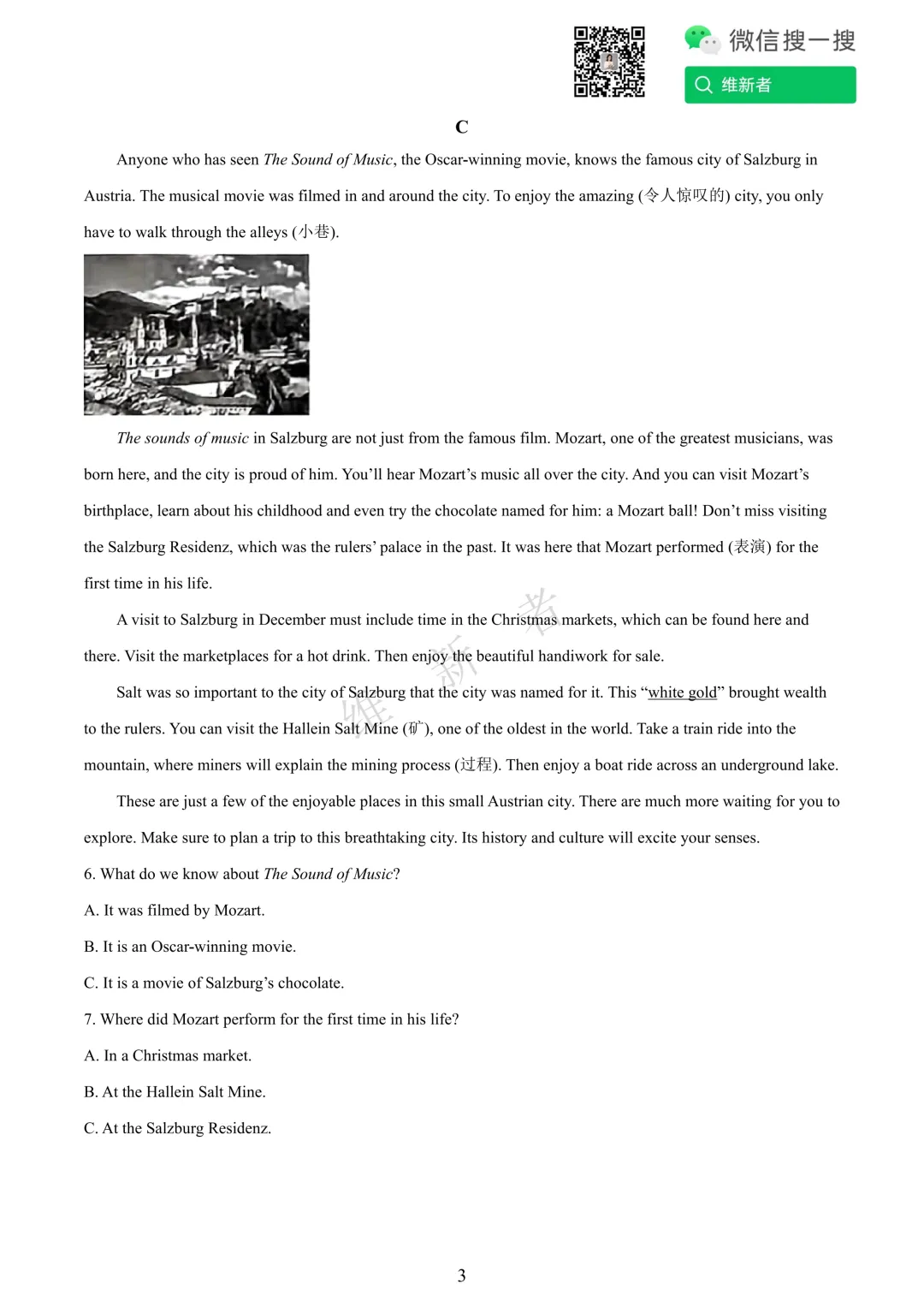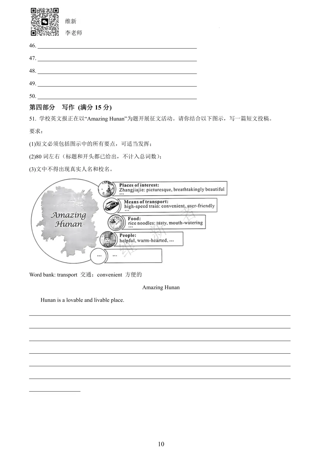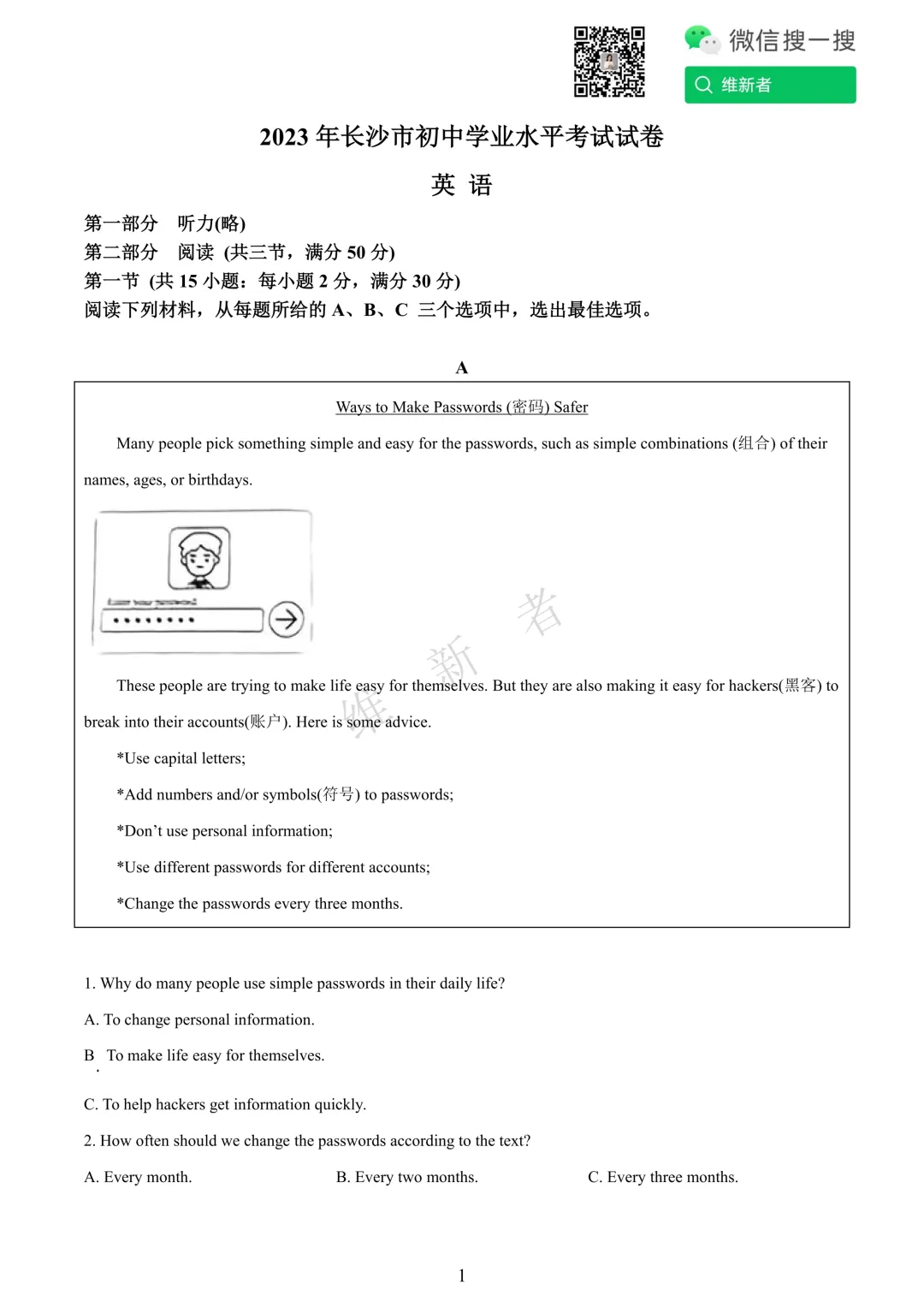 维新者致力于收集和整理各大名校试题,帮助您省心省力获取各类优质的试卷与教辅资源。我们这次带来的是2023年长沙市初中学业水平考试试卷英语试题及答案,希望能够有助于您孩子的学习。