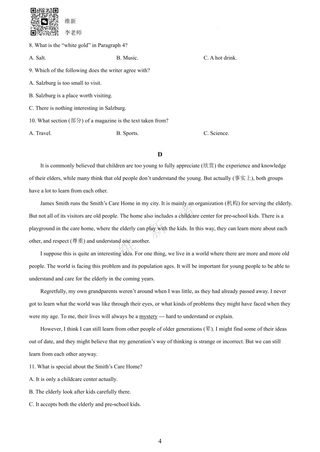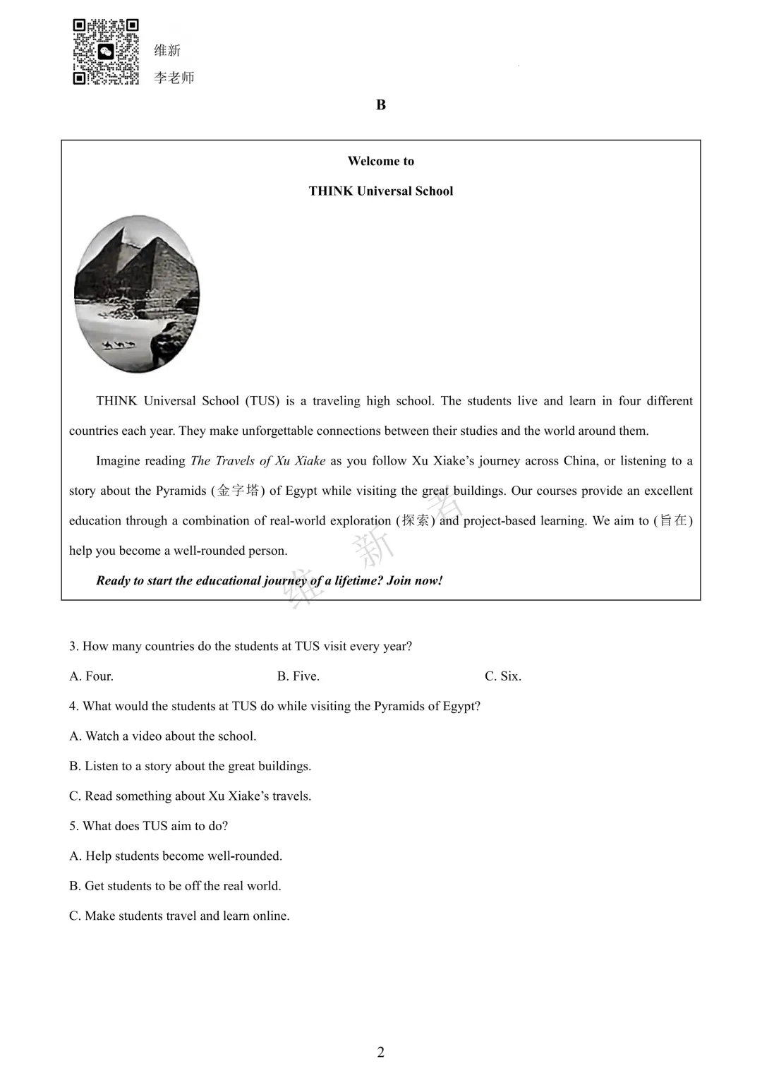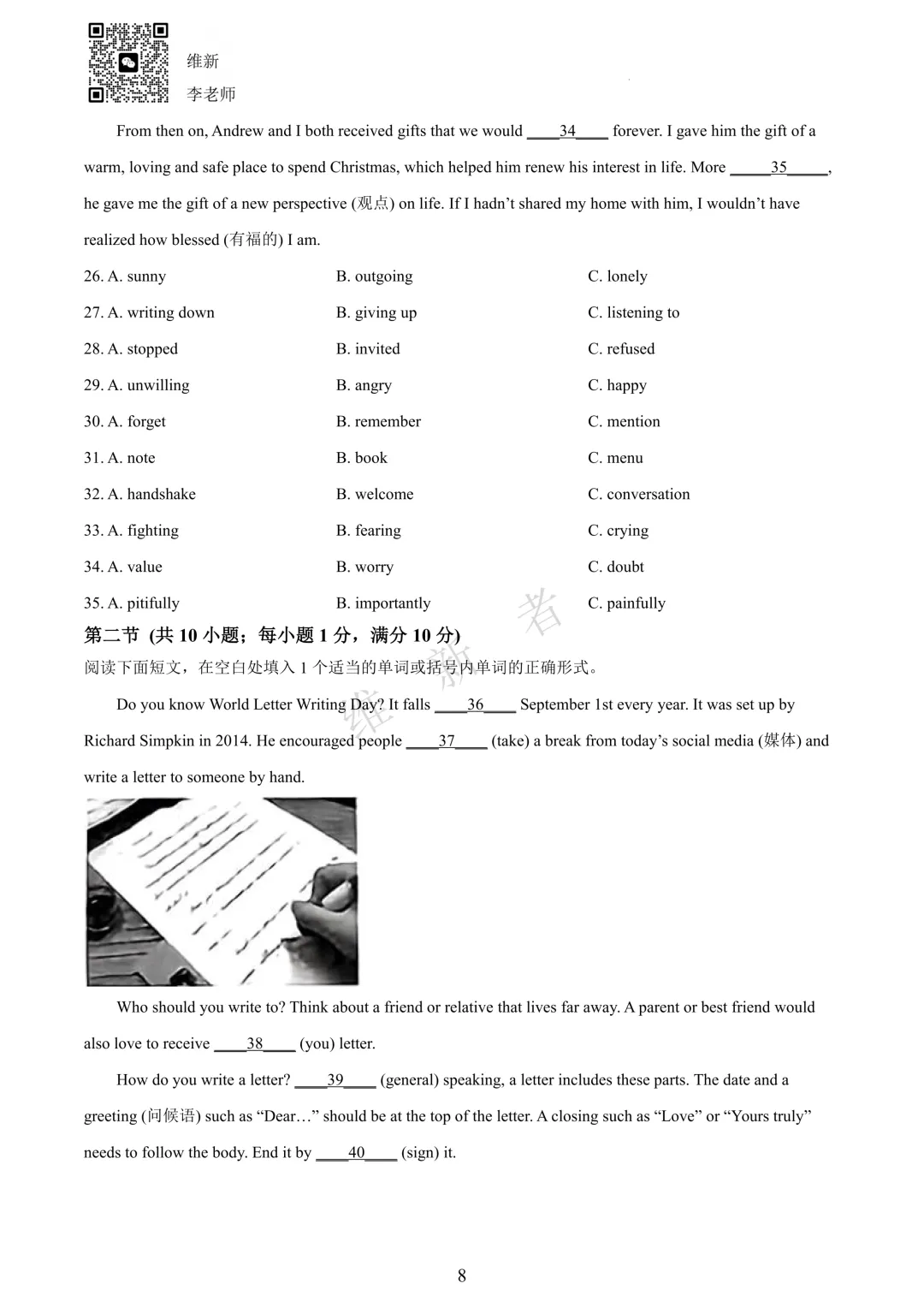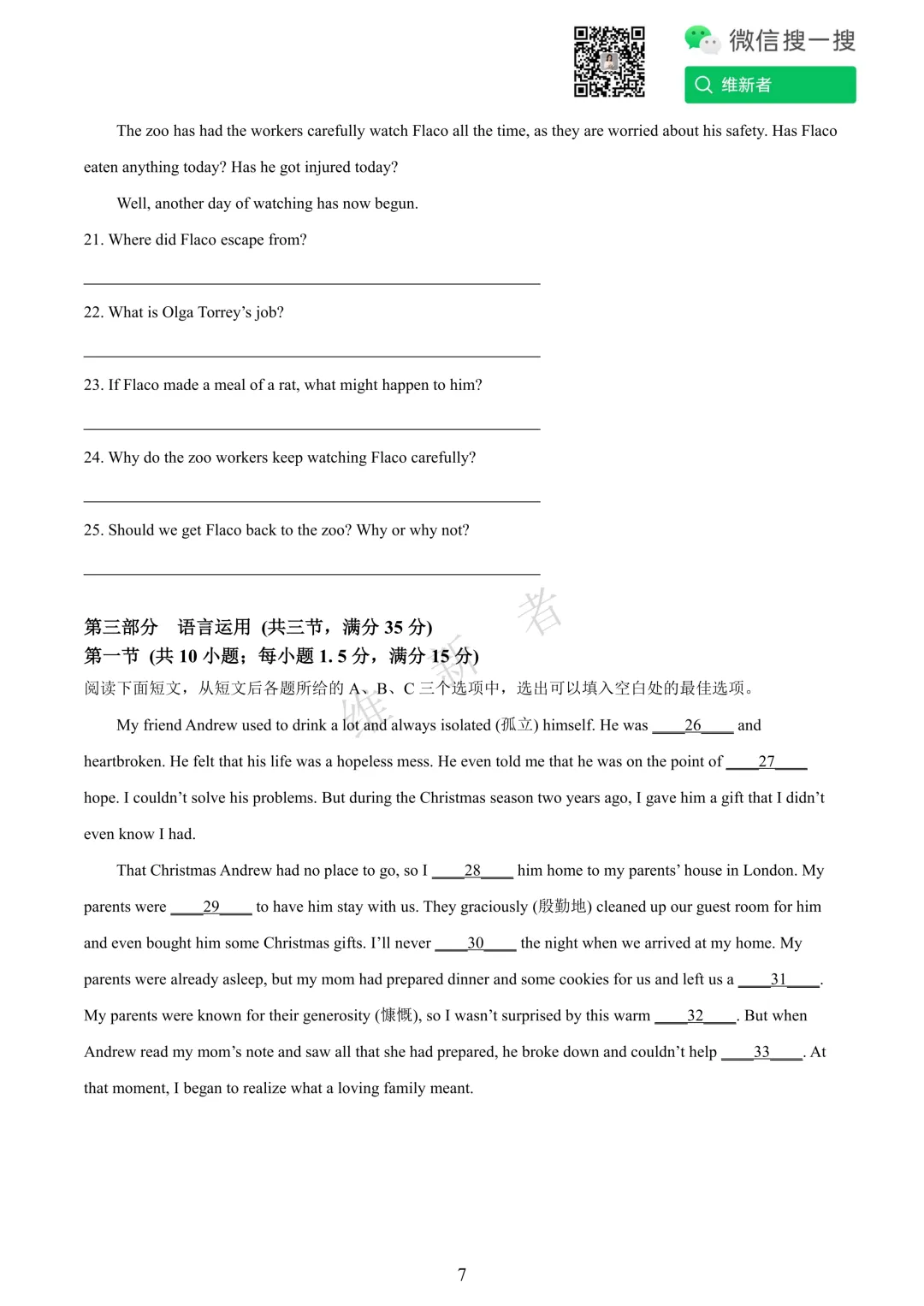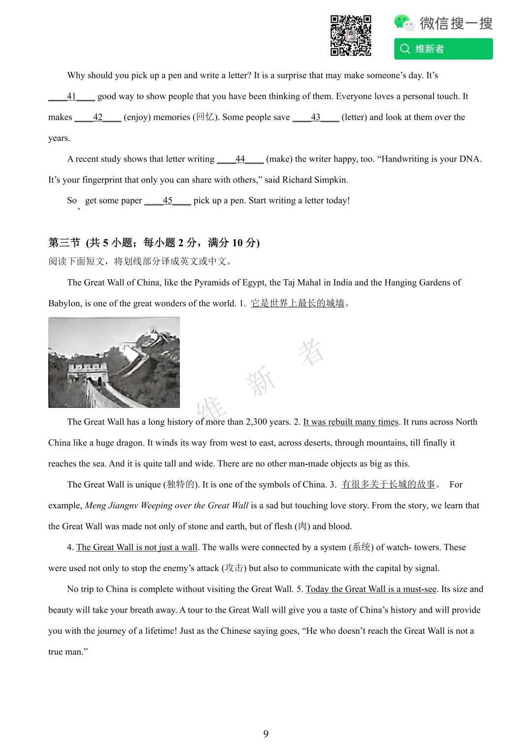 维新者致力于收集和整理各大名校试题,帮助您省心省力获取各类优质的试卷与教辅资源。我们这次带来的是2023年长沙市初中学业水平考试试卷英语试题及答案,希望能够有助于您孩子的学习。