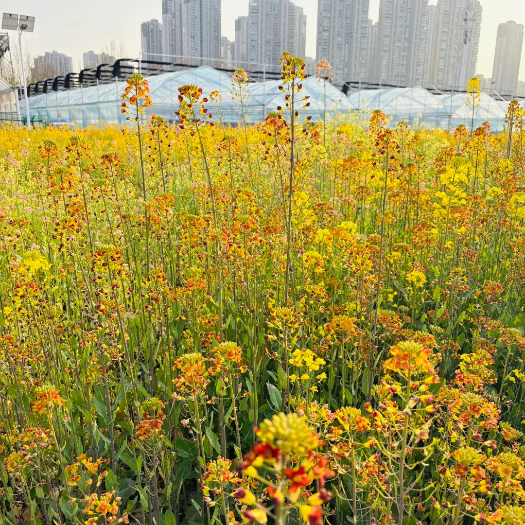 最惊喜的是,不用进校园,在校外就能拍到大片七彩油菜花!