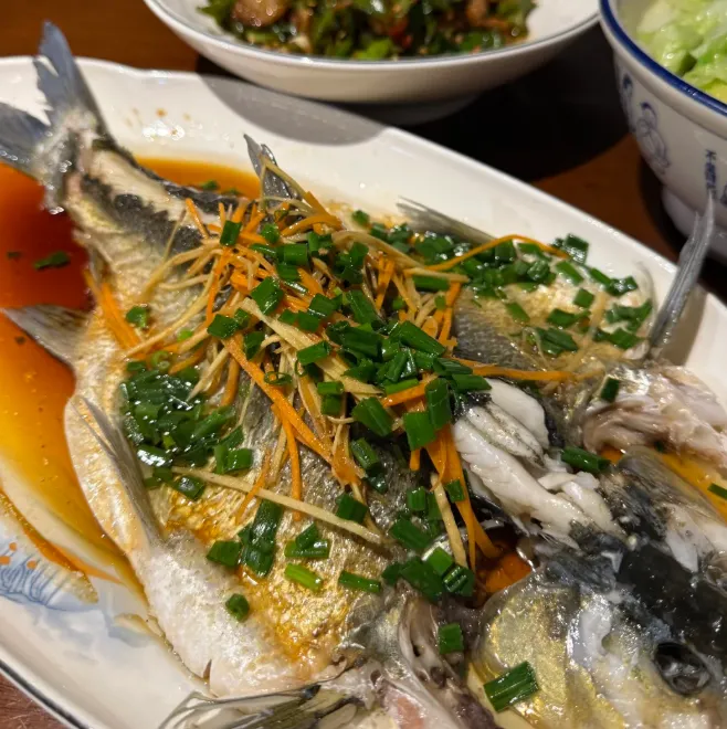 说一道清蒸翘嘴鱼的做法:鱼处理干净后抹少许盐,铺姜丝葱段,上锅大火蒸到刚熟就停。另起锅把油烧热,淋在鱼身上,再顺着边缘倒一点蒸鱼豉油,最后撒把葱花。别蒸老,嫩是关键。