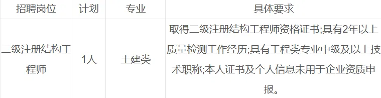 长沙拓望建设工程质量检测有限公司(以下简称“拓望检测公司”)是从事建筑工程质量检测的国有独资企业。由于公司发展工作需要,经请示主管单位批准,面向社会公开招聘二级注册结构工程师1名。现将具体招聘方案公告如下: