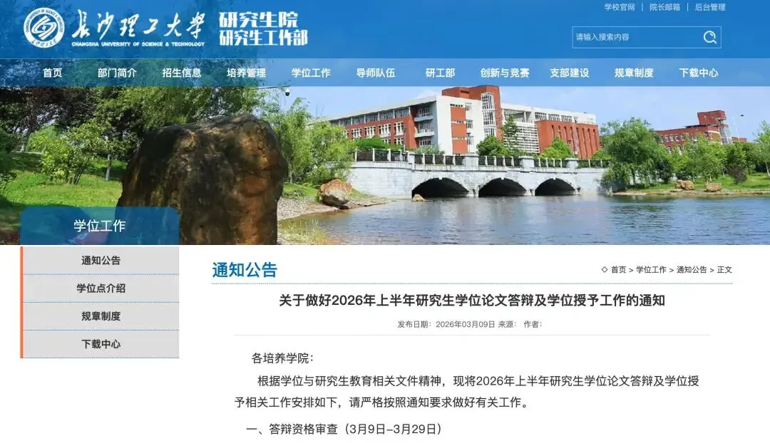 长沙理工大学学位评定委员会办公室于2026年3月9日正式下发通知: