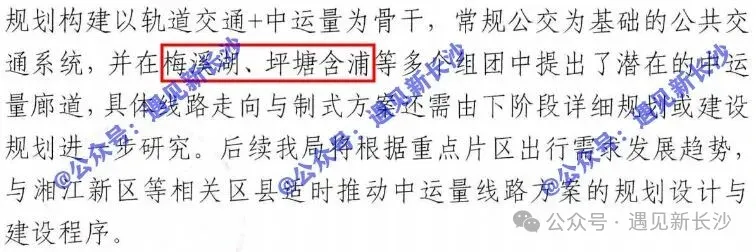 根据规划成果,我市规划构建以轨道交通+中运量为骨干,常规公交为基础的公共交通系统,并在梅溪湖、坪塘、含浦等多个组团中提出了潜在的中运量廊道,具体线路走向与制式方案还需由下阶段详细规划或建设规划进一步研究。后续我局将根据重点片区出行需求发展趋势,与湘江新区等相关区县适时推动中运量线路方案的规划设计与建设程序。
