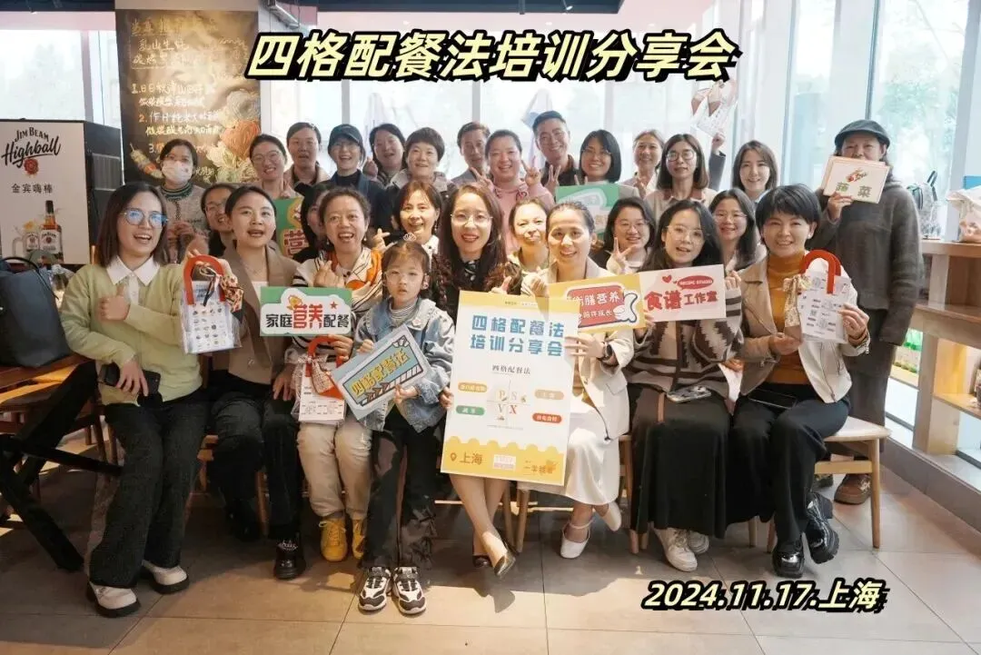 在大家的支持与陪伴下,四格配餐法线下分享会也不断升级完善,目前已形成三大专题:四格配餐法培训分享会、四格配餐法『金・丹营养日课』、四格配餐法健康适宜技术高级培训班,为不同需求的伙伴提供分层、系统、持续的学习与成长支持。
