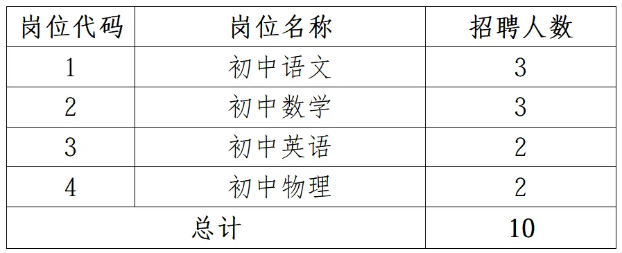 此次招聘岗位4个,招聘计划10名,具体见下表: