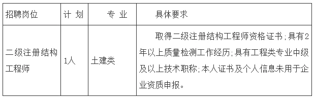 长沙拓望建设工程质量检测有限公司(以下简称“拓望检测公司”)是从事建筑工程质量检测的国有独资企业。由于公司发展工作需要,经请示主管单位批准,面向社会公开招聘二级注册结构工程师1名。现将具体招聘方案公告如下: