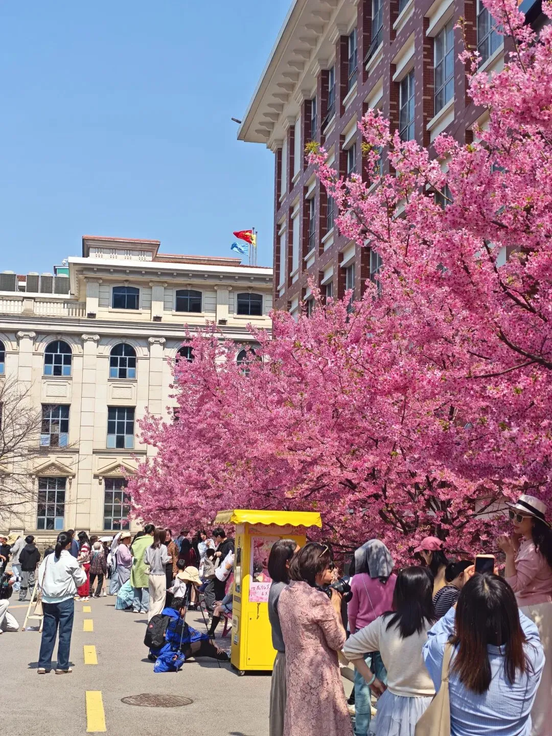 一进园区,娃的眼睛就亮了!樱花树开得层层叠叠,像一大团粉色的棉花糖云。花瓣随风飘落,娃追着跑、用手接,能自顾自玩上好一会儿,老母亲终于能坐下喘口气,拍点美照了📸