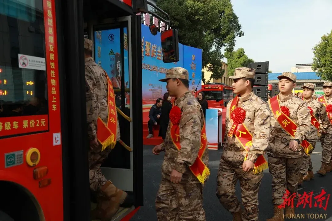 伴随着雷锋家乡子弟兵从军歌《当兵去》,新兵们登上“雷锋·强军号”巴士,踏上光荣的征程,奔赴祖国各地。