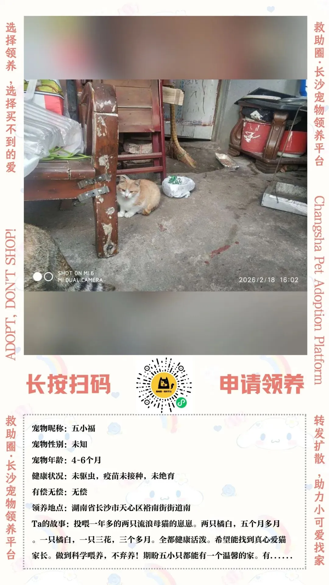 2026年03月14日长沙宠物领养(3只猫猫、2只狗狗)