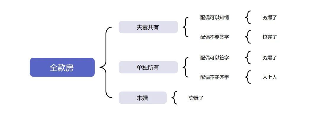又扯远了,不过全款房因为婚姻法所限制,我把他分为了五种形态,如下图。
