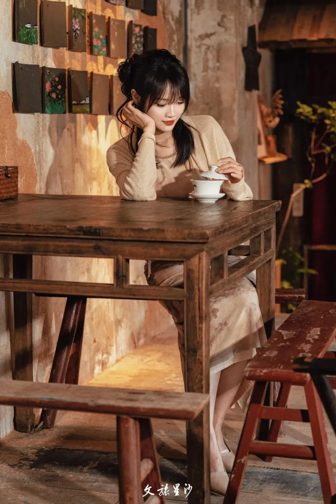 从杨开慧纪念馆出来,步行几分钟就能遇见初恋茶馆。这家长在田里的茶馆,有着七八十年代的复古风,老物件、旧茶具、墙上挂着的手写茶单,每一处都透着怀旧的温度。
